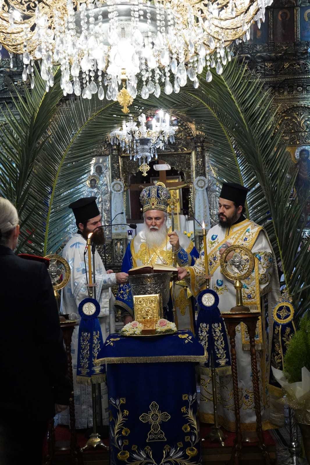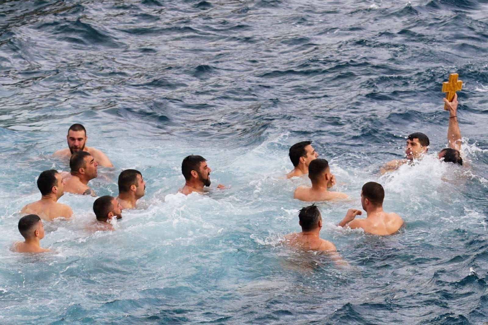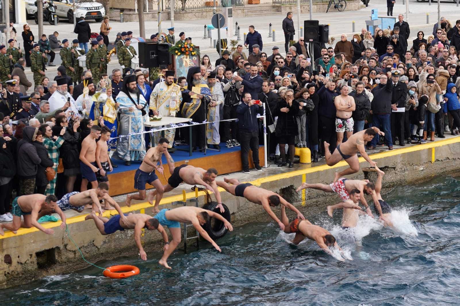 Στο τέλος της λατρευτικής σύναξης τελέσθηκε η ακολουθία του Μεγάλου Αγιασμού, ενώ στη συνέχεια σχηματίστηκε λιτανευτική πομπή, με την συνοδεία της φιλαρμονικής του Στρατού και του Δήμου, προς το κεντρικό λιμάνι της Μύρινας, όπου πραγματοποιήθηκε ο καθαγιασμός των υδάτων. Πολλοί νέοι έπεσαν στην θάλασσα, αψηφώντας τα παγωμένα νερά, για να τηρήσουν το παραδοσιακό έθιμο και να ανασύρουν τον Τίμιο Σταυρό για τον αγιασμό της ζωής τους.