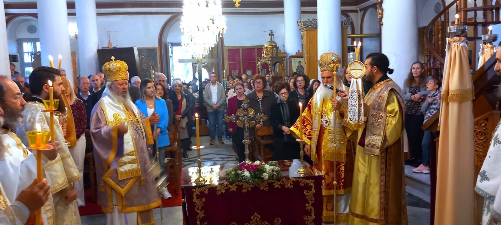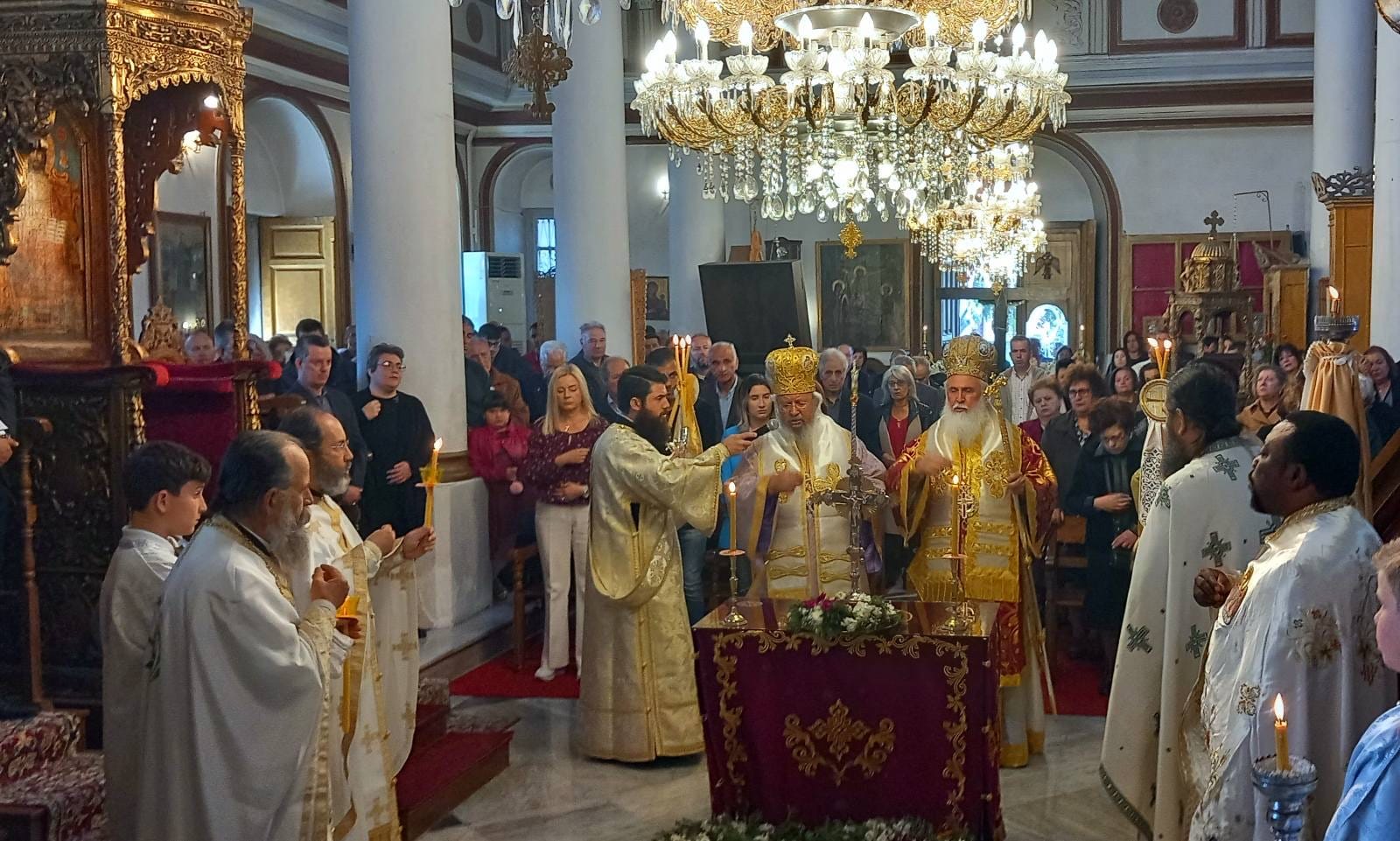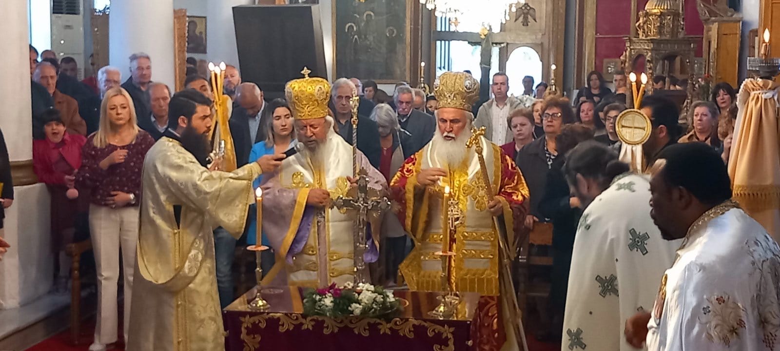 Την κυριώνυμο ημέρα της εορτής της Σταυροπροσκυνήσεως τελέστηκε στον Ι. Μητροπολιτικό Ναό ο όρθρος και το πανηγυρικό Αρχιερατικό συλλείτουργο προεξάρχοντος του Πανιερ. Μητροπολίτου Φαναρίου κ. Αγαθαγγέλου, συλλειτουργούντος του Σεβ. Ποιμενάρχου μας.
