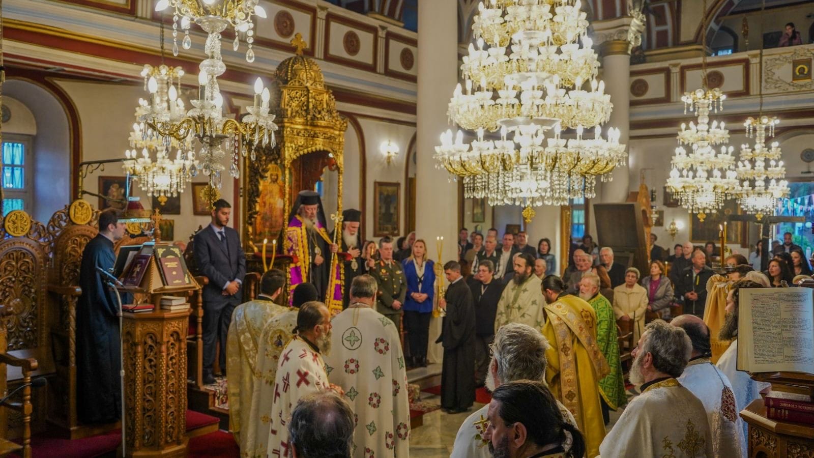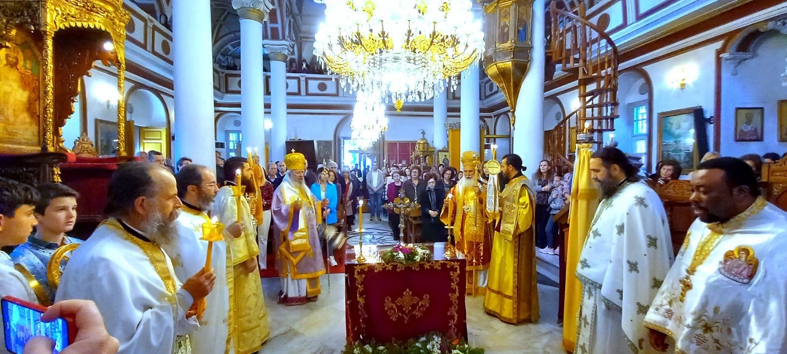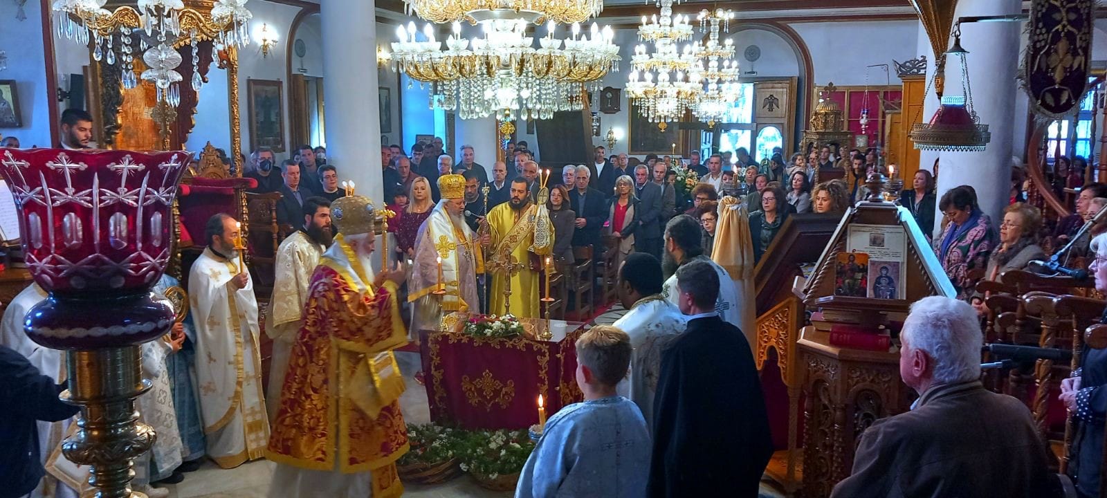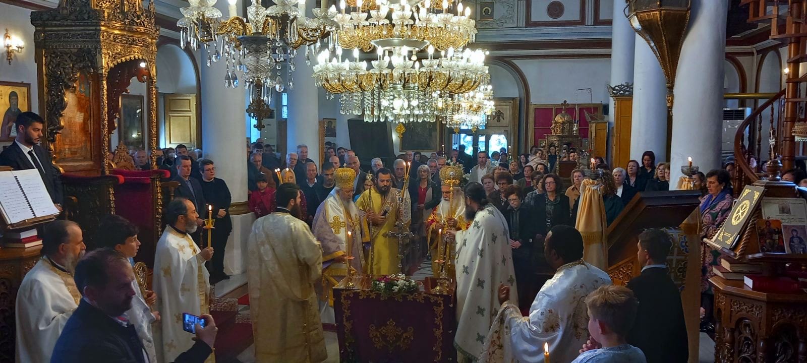 Την κυριώνυμο ημέρα της εορτής της Σταυροπροσκυνήσεως τελέστηκε στον Ι. Μητροπολιτικό Ναό ο όρθρος και το πανηγυρικό Αρχιερατικό συλλείτουργο προεξάρχοντος του Πανιερ. Μητροπολίτου Φαναρίου κ. Αγαθαγγέλου, συλλειτουργούντος του Σεβ. Ποιμενάρχου μας.