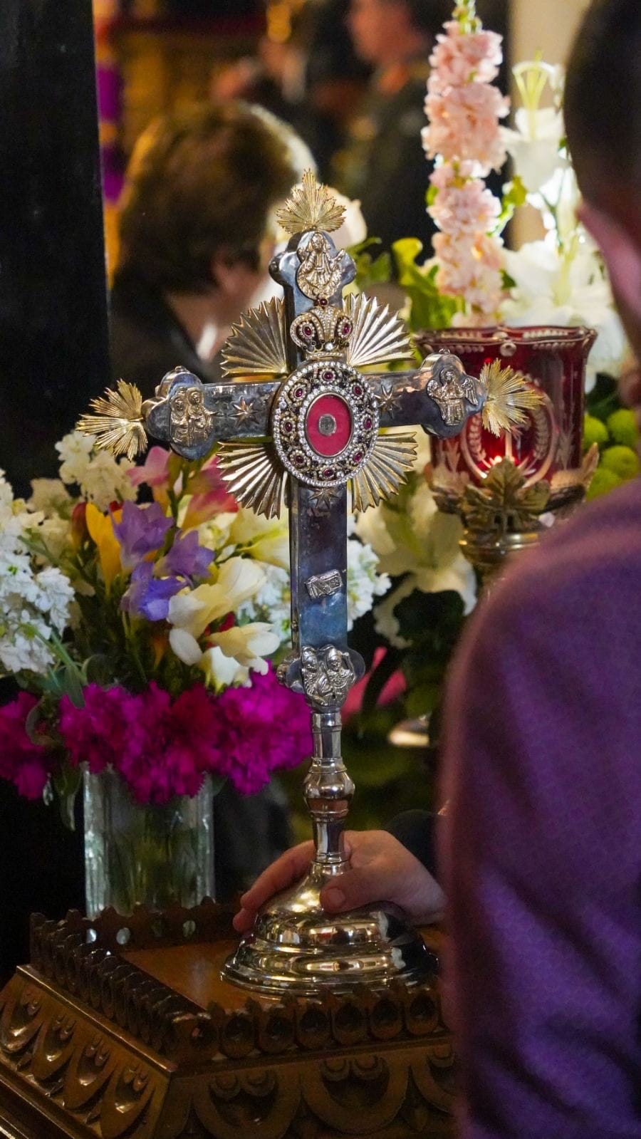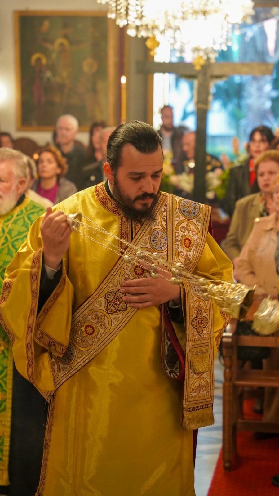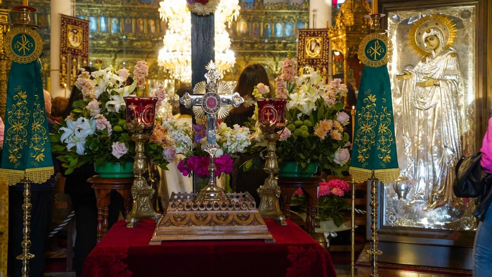 Ο Πανιερώτατος Μητροπολίτης Φαναρίου κ. Αγαθάγγελος, Γενικός Διευθυντής της Αποστολικής Διακονίας της Εκκλησίας της Ελλάδος, κατόπιν αιτήματός μας, μετέφερε το ιερό θησαύρισμα της πίστεως μας προς αγιασμόν και ενίσχυση των πιστών, με αφορμή την Κυριακή της Σταυροπροσκυνήσεως και χοροστάτησε κατά τον Μεγάλο Πανηγυρικό Εσπερινό που ακολούθησε.