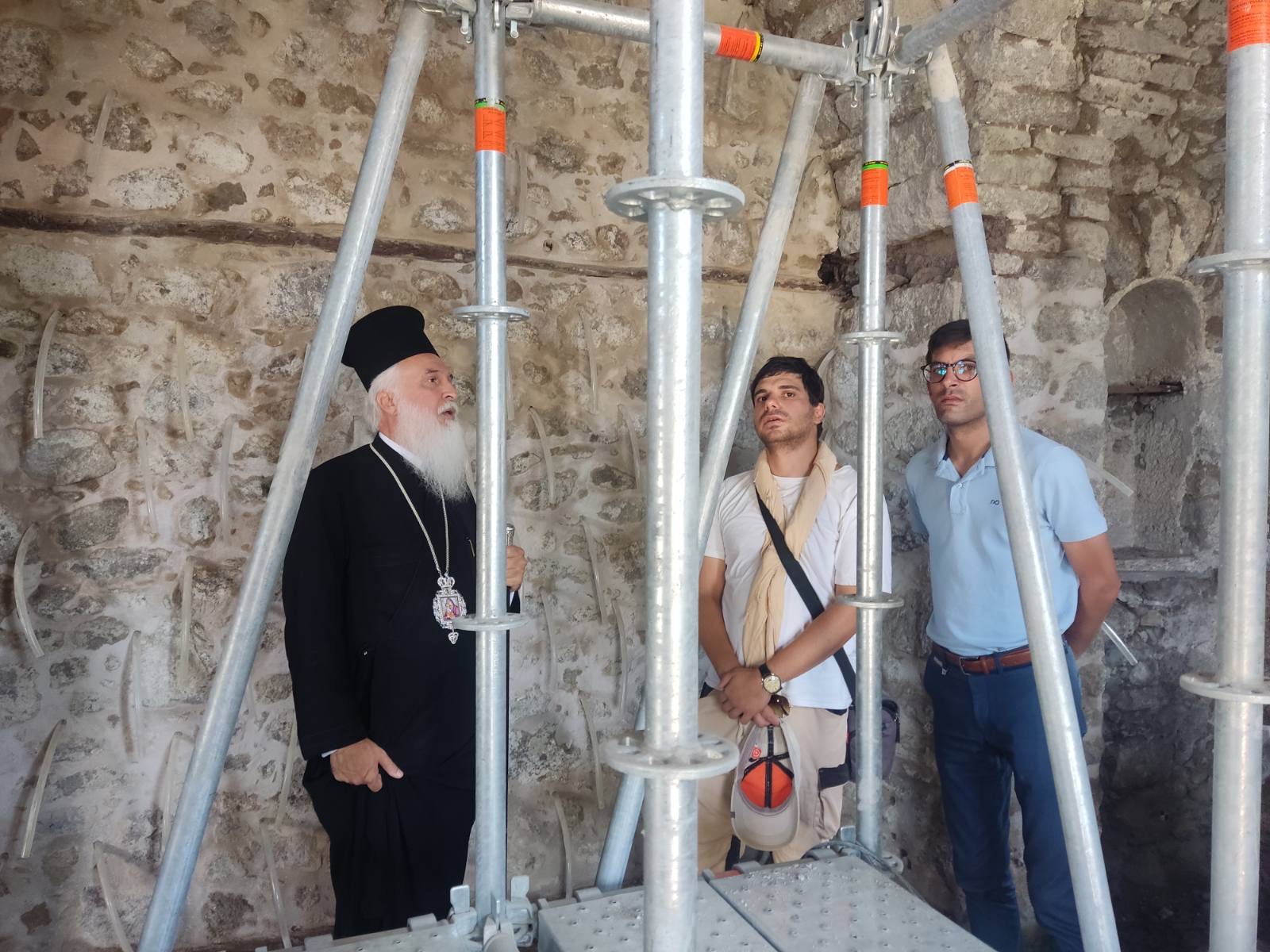 Επίσης ο Σεβ. κ. Ιερόθεος επισκέφθηκε τον παλαιό βυζαντινό και εμβληματικό Ναό του Αγίου Βασιλείου, ο οποίος συμπεριελήφθη με παρέμβασή του στα προγράμματα αποκαταστάσεως του μνημείου από την αρμόδια Εφορία Βυζαντινών Αρχαιοτήτων της Περιφερείας και ενημερώθηκε εμπεριστατωμένα για την πορεία των εργασιών αναστήλωσής του και την εξέλιξη του έργου από τους εργαζόμενους σε αυτό. Εξέφρασε την ικανοποίηση του και απηύθυνε τα συγχαρητήριά του στον Προϊστάμενο της Εφορείας και στους εργαζόμενους Αρχαιολόγους, ευχόμενος την ταχεία περάτωση της αποκαταστάσεως του ιστορικού μνημείου.