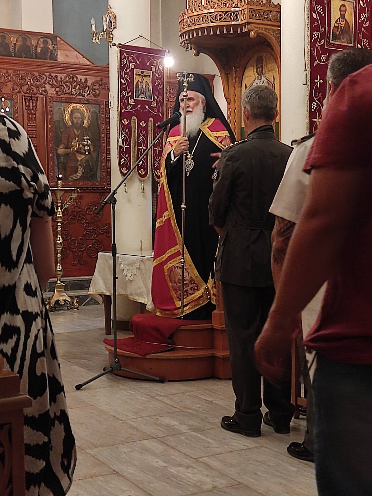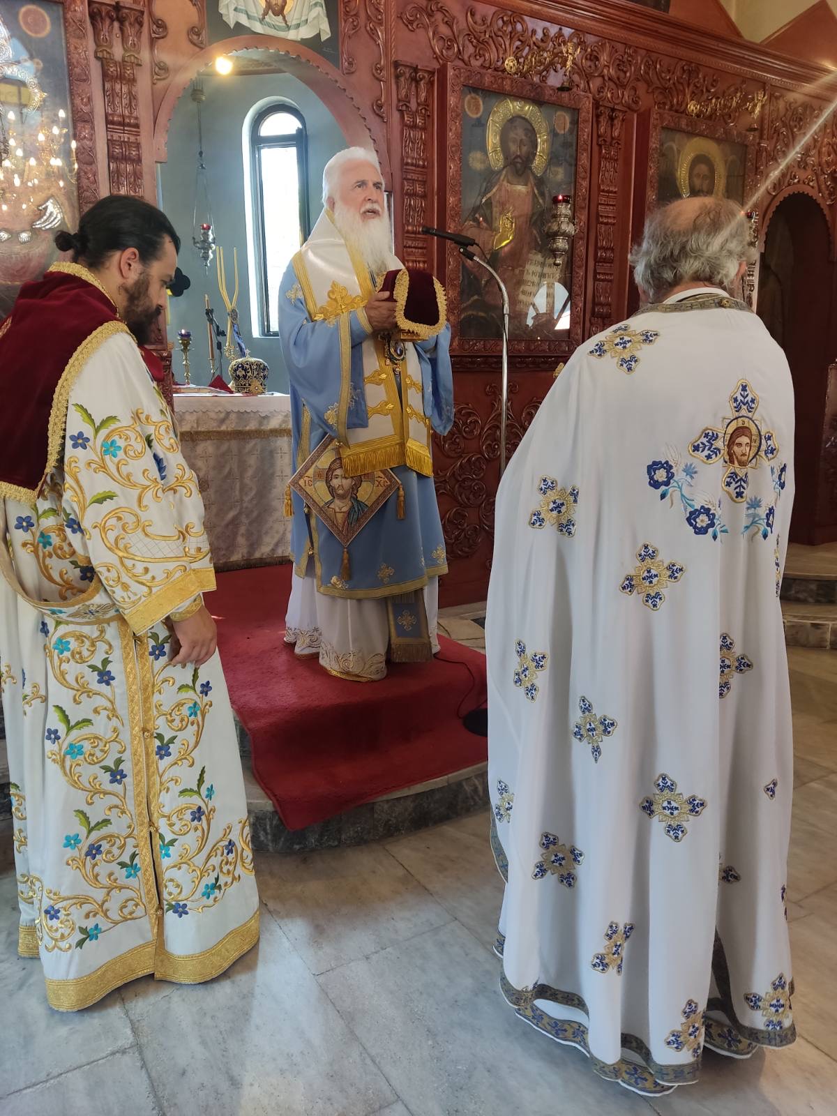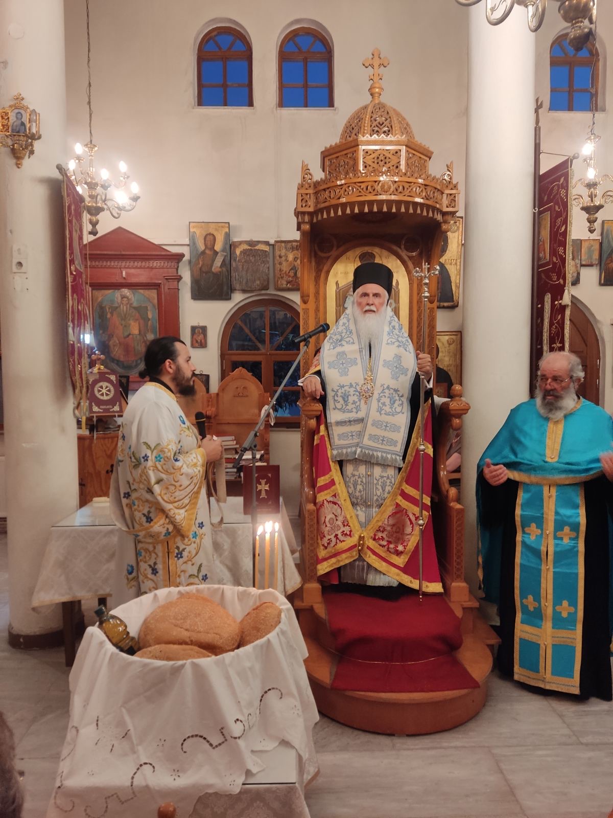 Κατά την παραμονή του στο νησί ο Σεβ. ετέλεσε τον πανηγυρικό εσπερινό της Δεσποτικής εορτής με την συμπροσευχητική παρουσία των πολιτικών, στρατιωτικών αρχών και των Σωμάτων Ασφαλείας και με την πηγαία συμμετοχή των πιστών. Απευθύνοντας λόγο πνευματικής οικοδομής στους κατοίκους και στους καλοκαιρινούς επισκέπτες του νησιού που εκκλησιάστηκαν, μίλησε για την ανάγκη μεταμορφώσεως του χαρακτήρα μας και της ποιότητάς του, ώστε με τη χάρη του Θεού να αλλάξει η ζωή και η κοινωνία μας από την παραμορφωμένη και αλλοιωμένη εικόνα που παρουσιάζει.