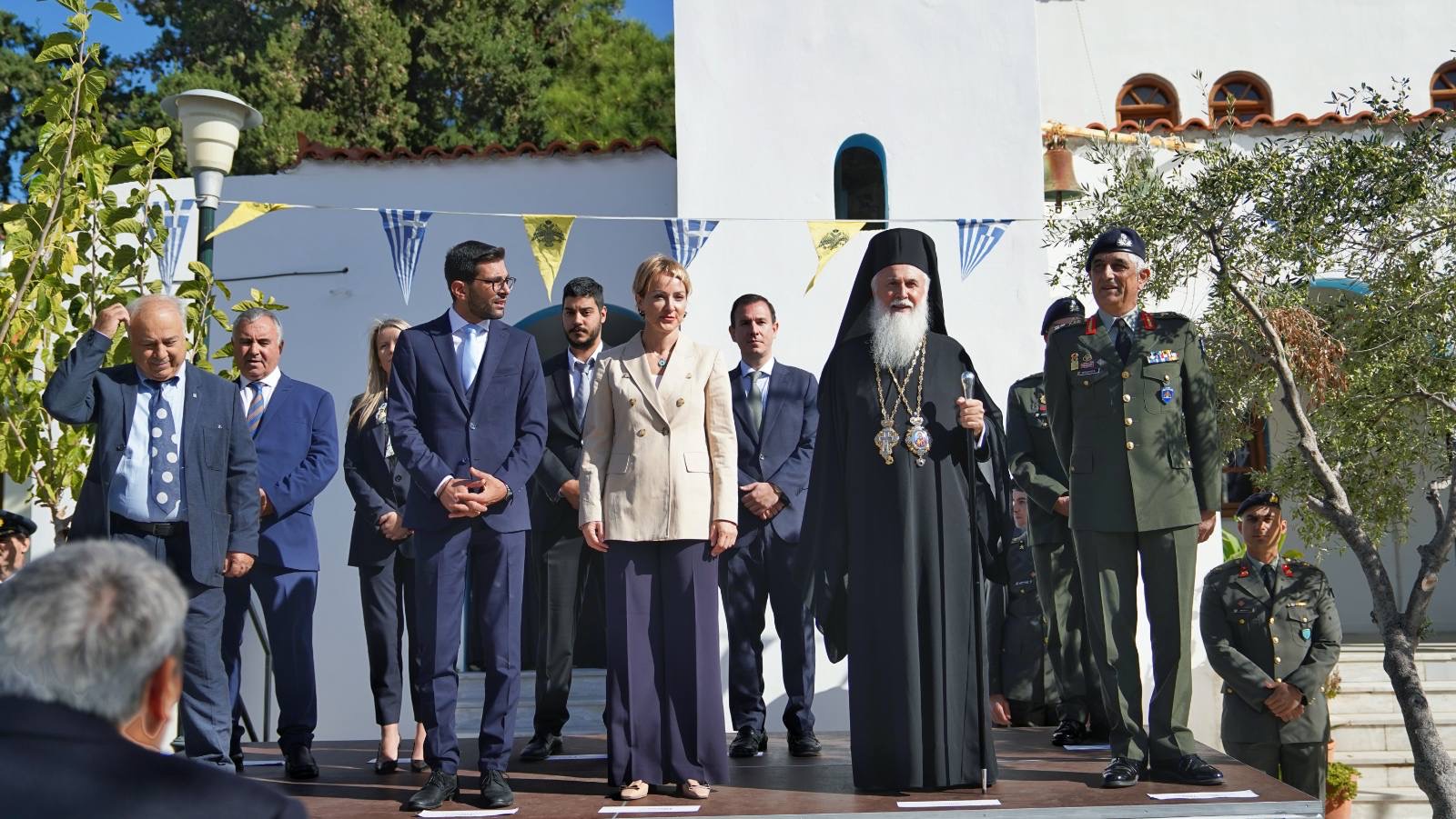 Το παρών έδωσαν η κ. Αλεξάνδρα Σδούκου, Υφυπουργός Περιβάλλοντος και Ενέργειας, ως εκπρόσωπος της κυβέρνησης, ο κ. Παναγιώτης Δουδωνής Βουλευτής Επικρατείας του ΠΑΣΟΚ, ως εκπρόσωπος του προέδρου του κόμματος, η κ. Μαριάννα Νικολαΐδου Γενική Γραμματέας της Αποκεντρωμένης Διοίκησης Αιγαίου, ο κ. Παναγιώτης Παρασκευαΐδης Βουλευτής Νομού Λέσβου του ΠΑΣΟΚ, ως εκπρόσωπος του Εθνικού Κοινοβουλίου, ο Βουλευτής Χίου του ΠΑΣΟΚ κ. Σταύρος Μιχαηλίδης, ο πρώην Βουλευτής του ΠΑΣΟΚ κ. Νίκος Σηφουνάκης, ενώ εκ μέρους των ενόπλων δυνάμεων παρευρέθηκαν ο διοικητής ΑΣΔΕΝ κ. Εμμανουήλ Θεοδώρου, ως εκπρόσωπος του Αργηγού ΓΕΕΘΑ και ο Ταξίαρχος της 88ΣΔΙ κ. Αλέξανδρος Κουφόπουλος, πλαισιωμένοι από αξιωματικούς του στρατού και των σωμάτων ασφαλείας.