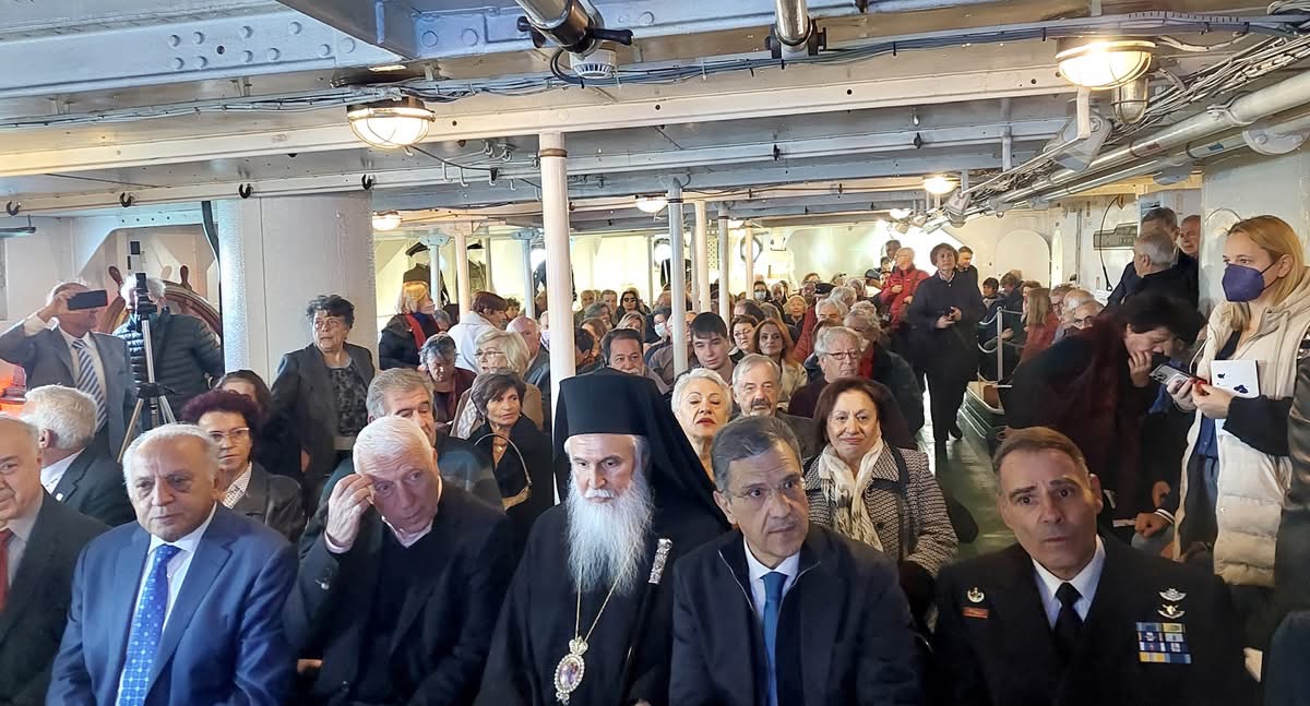 Ο Σεβ. Ποιμενάρχης μας κατά την Θεία Λειτουργία απηύθυνε στο πολυπληθέστατο εκκλησίασμα λόγο πνευματικής οικοδομής από την Ευαγγελική Περικοπή της ημέρας και αμέσως ανεχώρησε με την συνοδεία του για να συμμετάσχει στην εκδήλωση τιμής και μνήμης, η οποία διοργανώθηκε με την συμμετοχή του Συλλόγου Απανταχού Αγιοευστρατιτών, καθώς και των Συλλόγων των τοπικών κοινωνιών των νησιών του Βορείου Αιγαίου, μέσα στο ιστορικό Θωρηκτό Αβέρωφ, στην περιοχή Φλοίσβος του Παλαιού Φαλήρου στην Αττική.