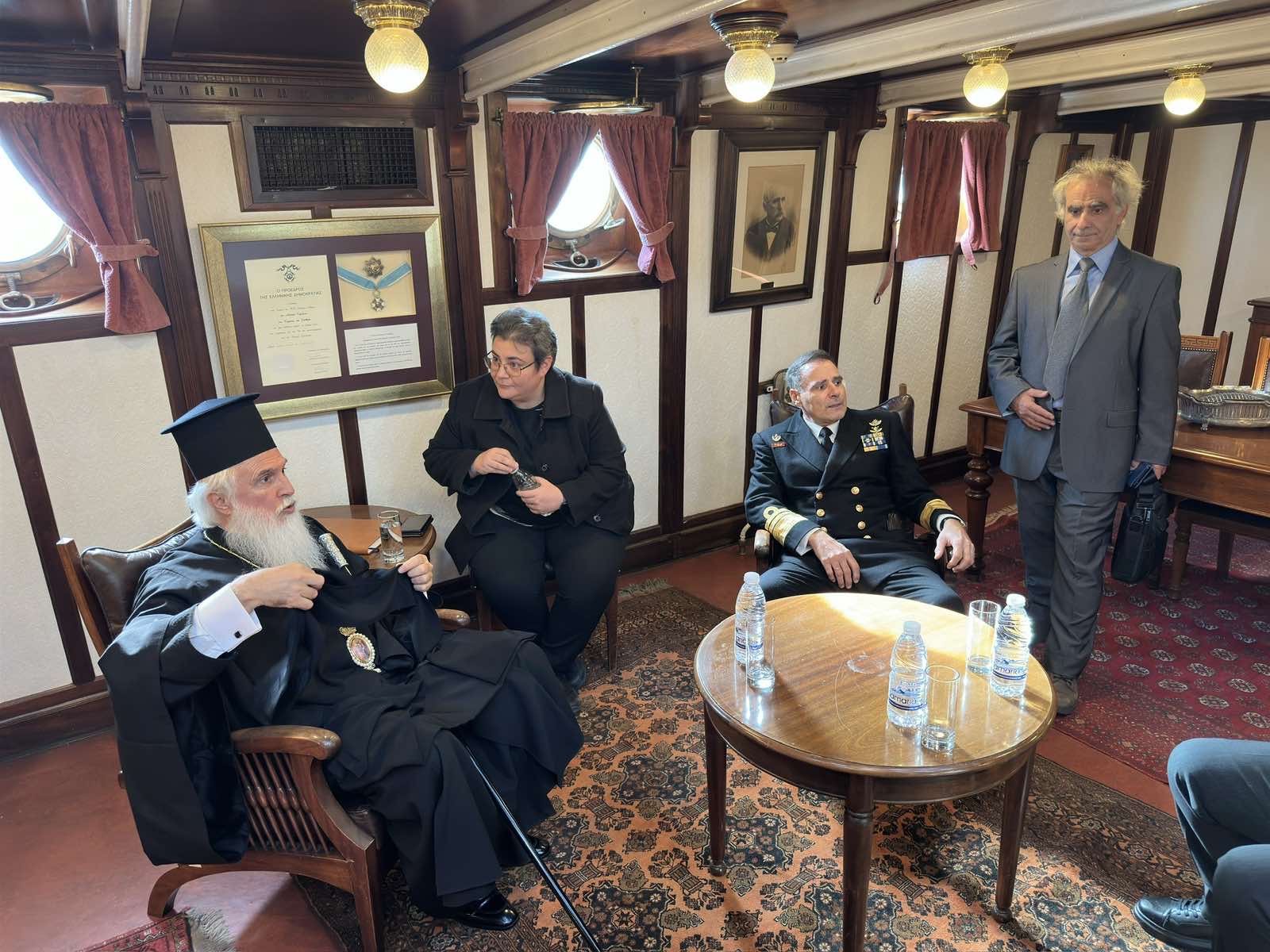 Τους επισκέπτες υποδέχθηκε εγκάρδια ο Κυβερνήτης και Διευθυντής του του θωρηκτού « Γ. Αβέρωφ », Αντιναύαρχος Π. Ν. Ιωάννης Καλογερόπουλος, ο οποίος στο τέλος της εκδήλωσης τους ξενάγησε στους εσωτερικούς χώρους του Πλωτού Ναυτικού Μουσείου.