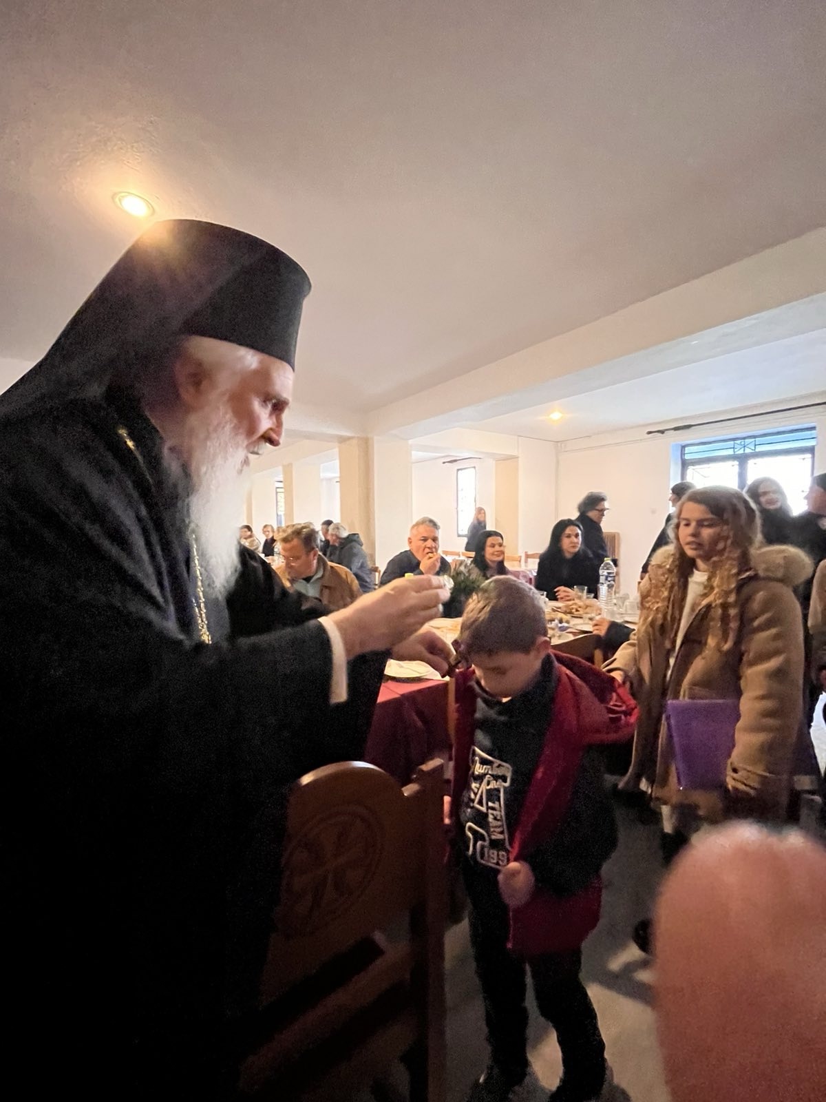 Ακολούθως, μετά το πέρας της Θείας Λειτουργίας, ο Σεβασμιώτατος συνοδεία των πιστών μετέβη στο Πνευματικό Κέντρο της Ενορίας και τέλεσε την ιερή Ακολουθία των θυρανοιξίων του νέου Παρεκκλησίου της ενορίας, το οποίο είναι αφιερωμένο στον νεοφανή Μικρασιάτη Άγιο Ιάκωβο τον εν Ευβοία.