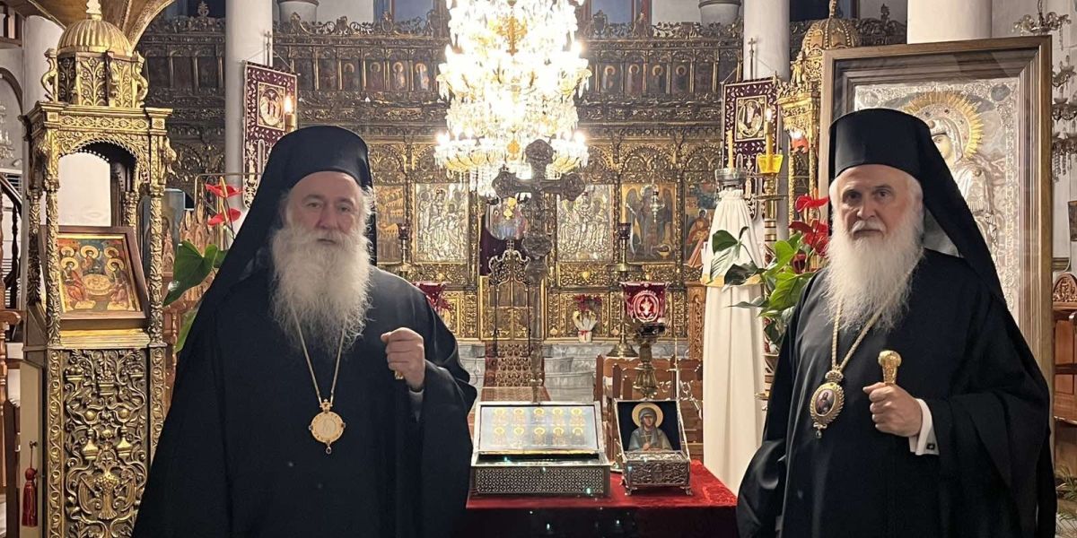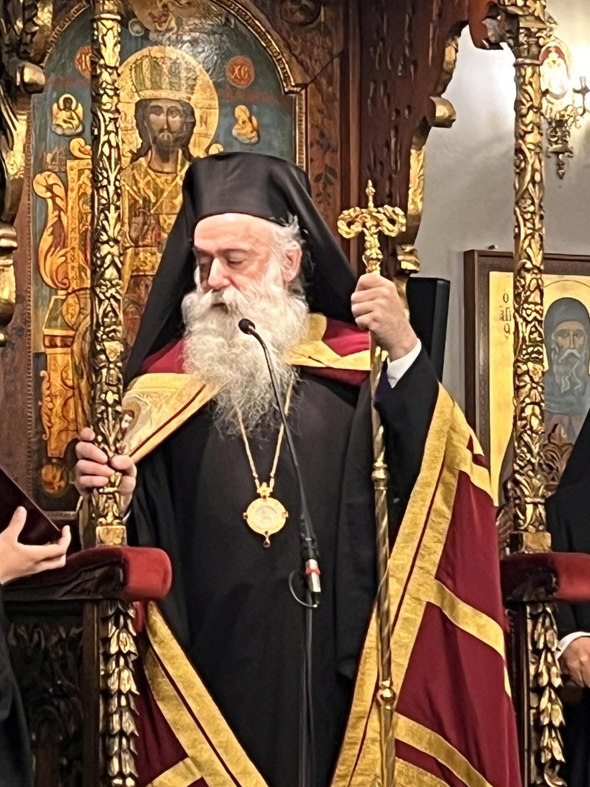 Αναφέρθηκε, επιπροσθέτως, με ξεχωριστούς λόγους στην προσωπικότητα και στην όλη εκκλησιαστική διακονία του φιλοξενουμένου Αρχιερέως, και αφού τον παρακάλεσε να διαβιβάσει στον Μακαριώτατο Αρχιεπίσκοπο κ. Ιερώνυμο, την προσωπική του μετάνοια και του ιερού κλήρου με αίτημα την προσευχή του για μια χριστοπρεπή και χριστοτερπή πορεία μας προς το Πάσχα του Κυρίου, του ζήτησε να απευθύνει λόγο πνευματικής οικοδομής.