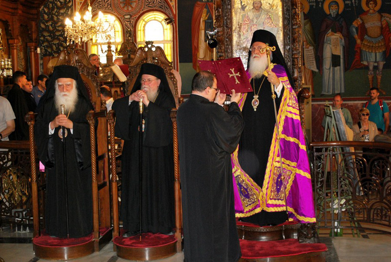 Ο Ποιμενάρχης μας ανταποκρινόμενος στους θερμούς λόγους υποδοχής των φιλοξενούντων Σεβ. Μητροπολιτών, τους ευχαρίστησε με την σειρά του, υπογραμμίζοντας την ενότητα της πίστεως και την κοινωνία της αγάπης που χαρακτηρίζουν αυτές τις συναντήσεις με αφορμές και επίκεντρο τα πρόσωπα των αγίων της Εκκλησίας μας.