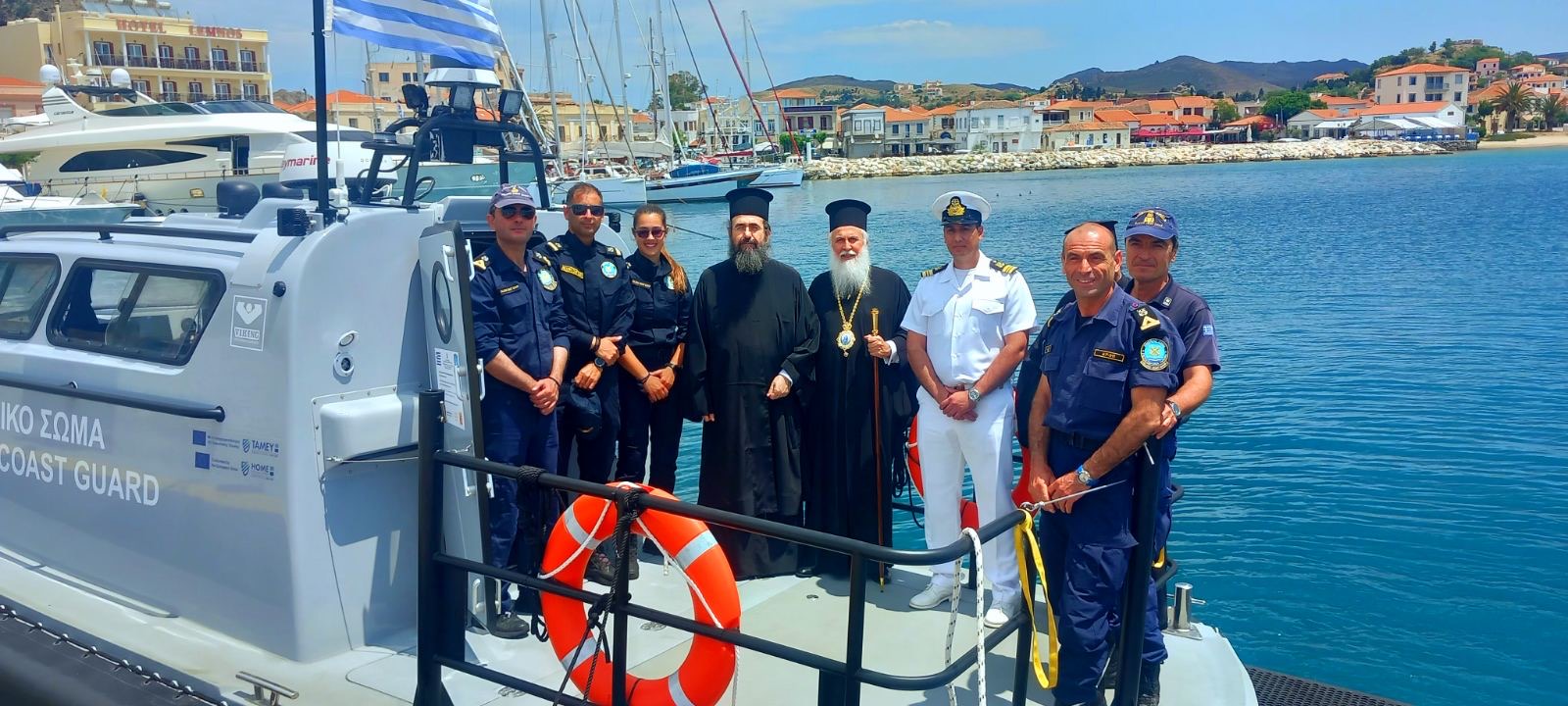 Αμέσως μετά την τελετή του αγιασμού, ο Σεβασμιώτατος προέβη και στα εγκαίνια του νέου σκάφους του Λιμενικού Σώματος, το οποίο εντάσσεται στο στόλο για την ενίσχυση της επιχειρησιακής ετοιμότητας και της ασφάλειας της νήσου μας στα θαλάσσια σύνορα.