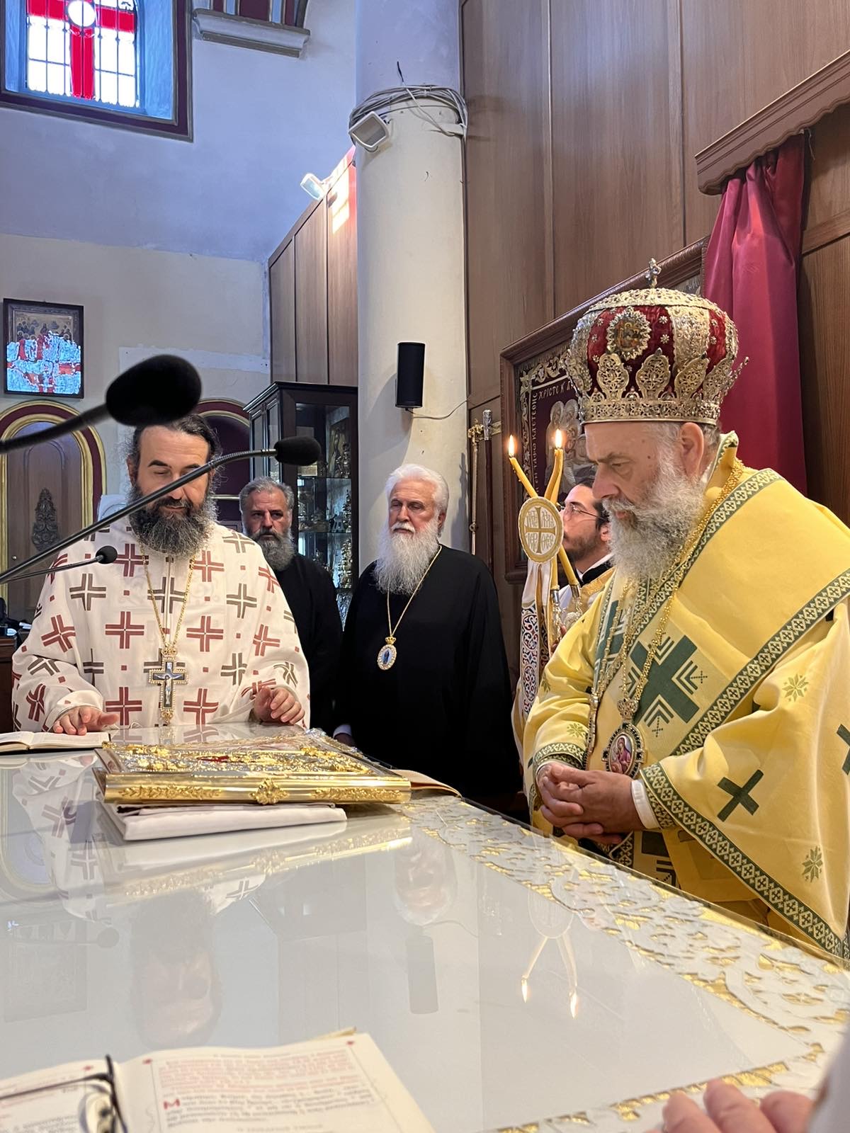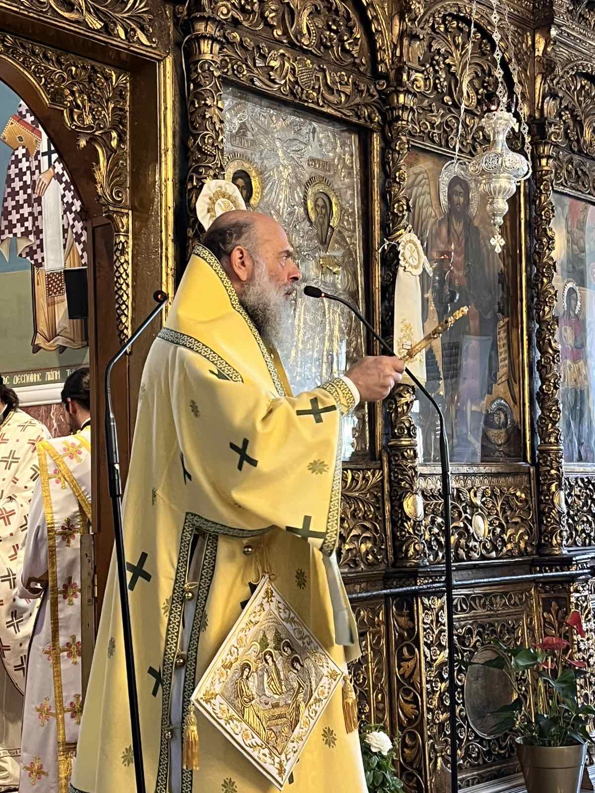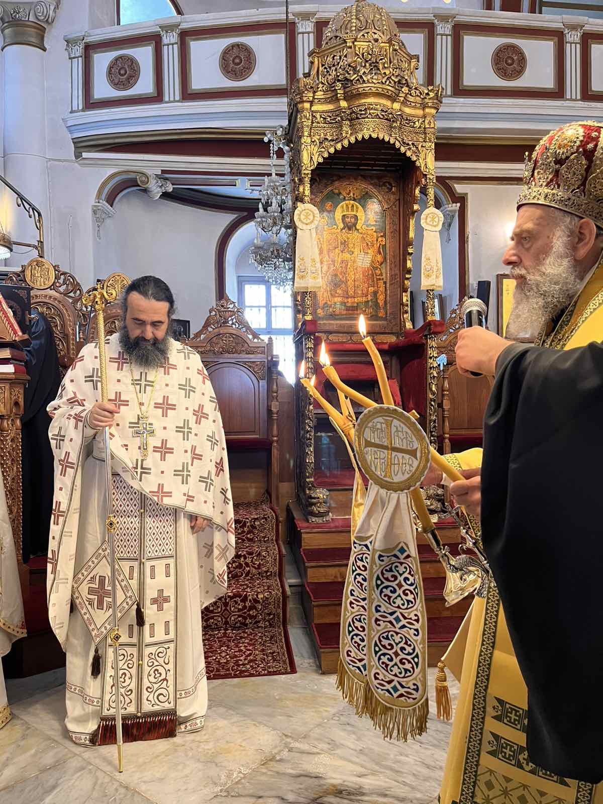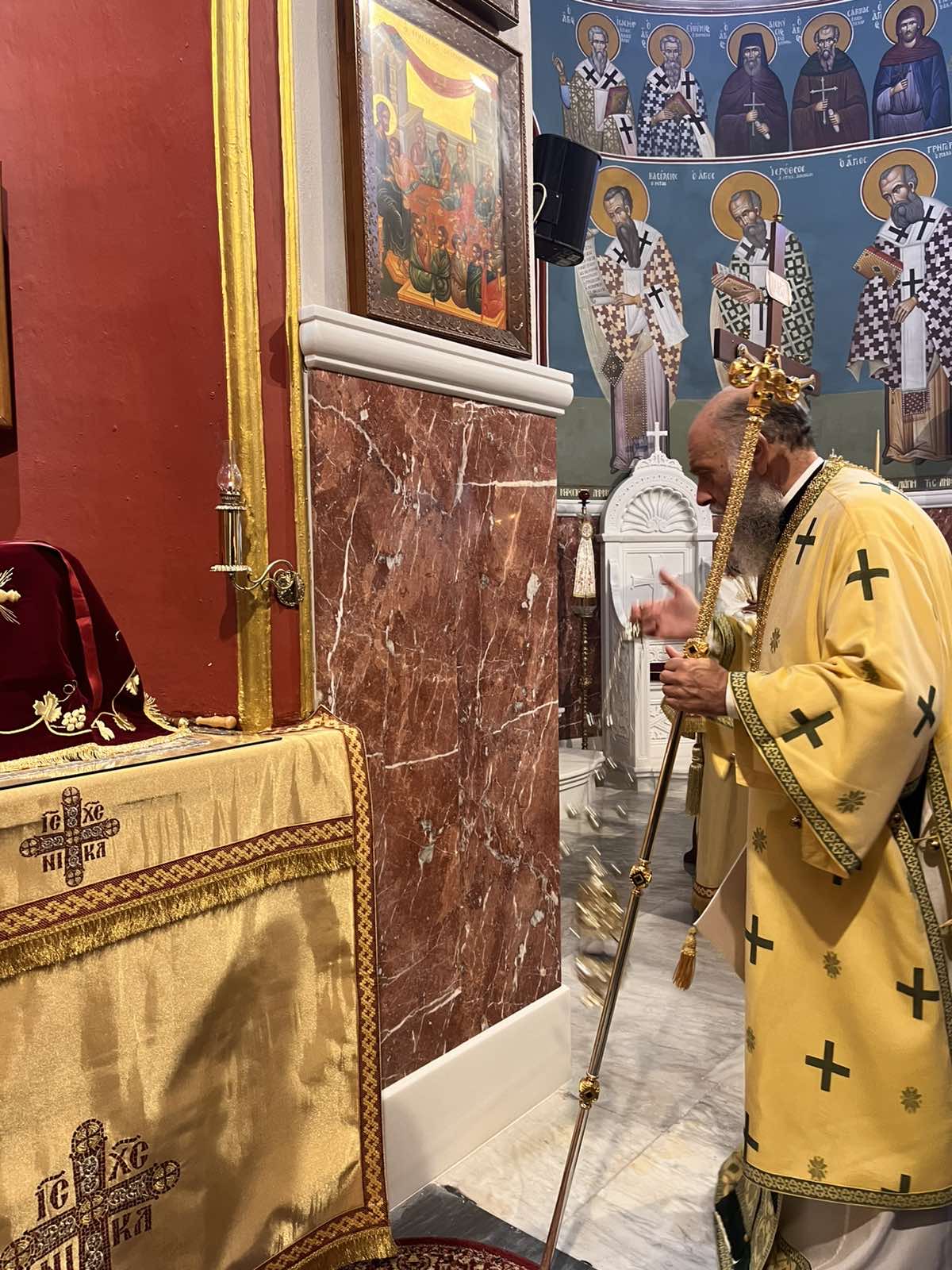 Συμπροσευχόμενος εντός του Ιερού Βήματος παρέστη και ο Σεβασμιώτατος Ποιμενάρχης μας κ. Ιερόθεος, ο οποίος με ιδιαίτερη χαρά υποδέχθηκε και καλωσόρισε τον φιλοξενούμενο Σεβ. Μητροπολίτη κ. Τιμόθεο, ευχαριστώντας τον θερμώς για την ανταπόκρισή του στην πρόσκληση και παρουσιάζοντάς τον στους πιστούς με θερμούς λόγους και ευγνωμοσύνη, κατά το πέρας της Θείας Λειτουργίας.