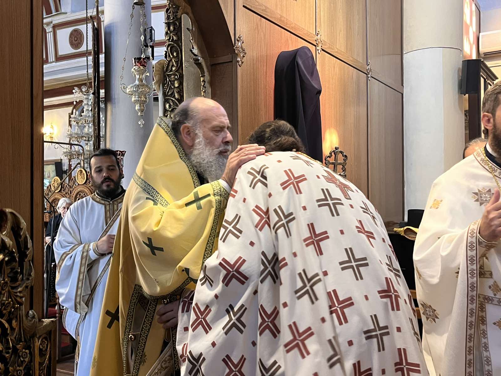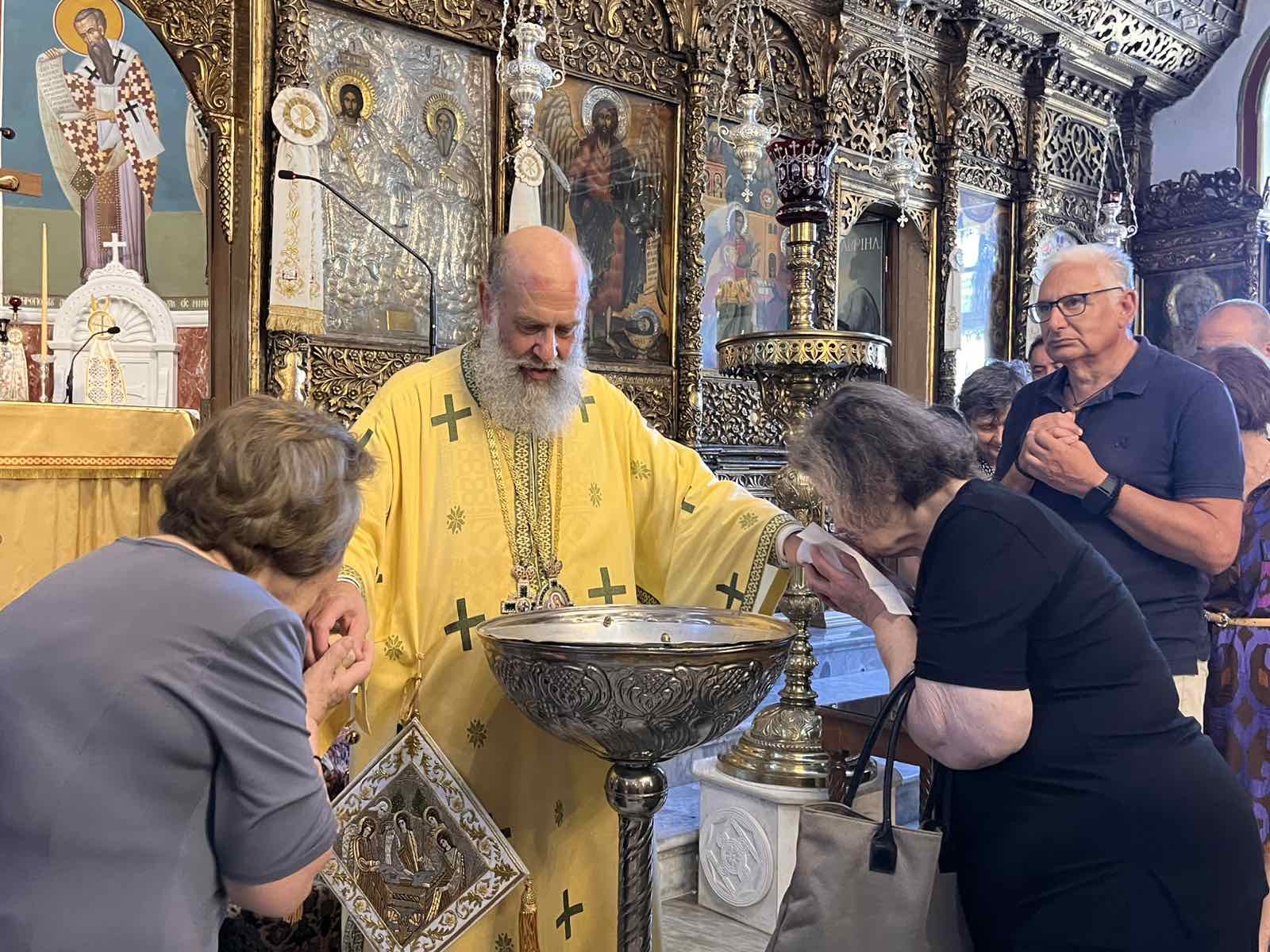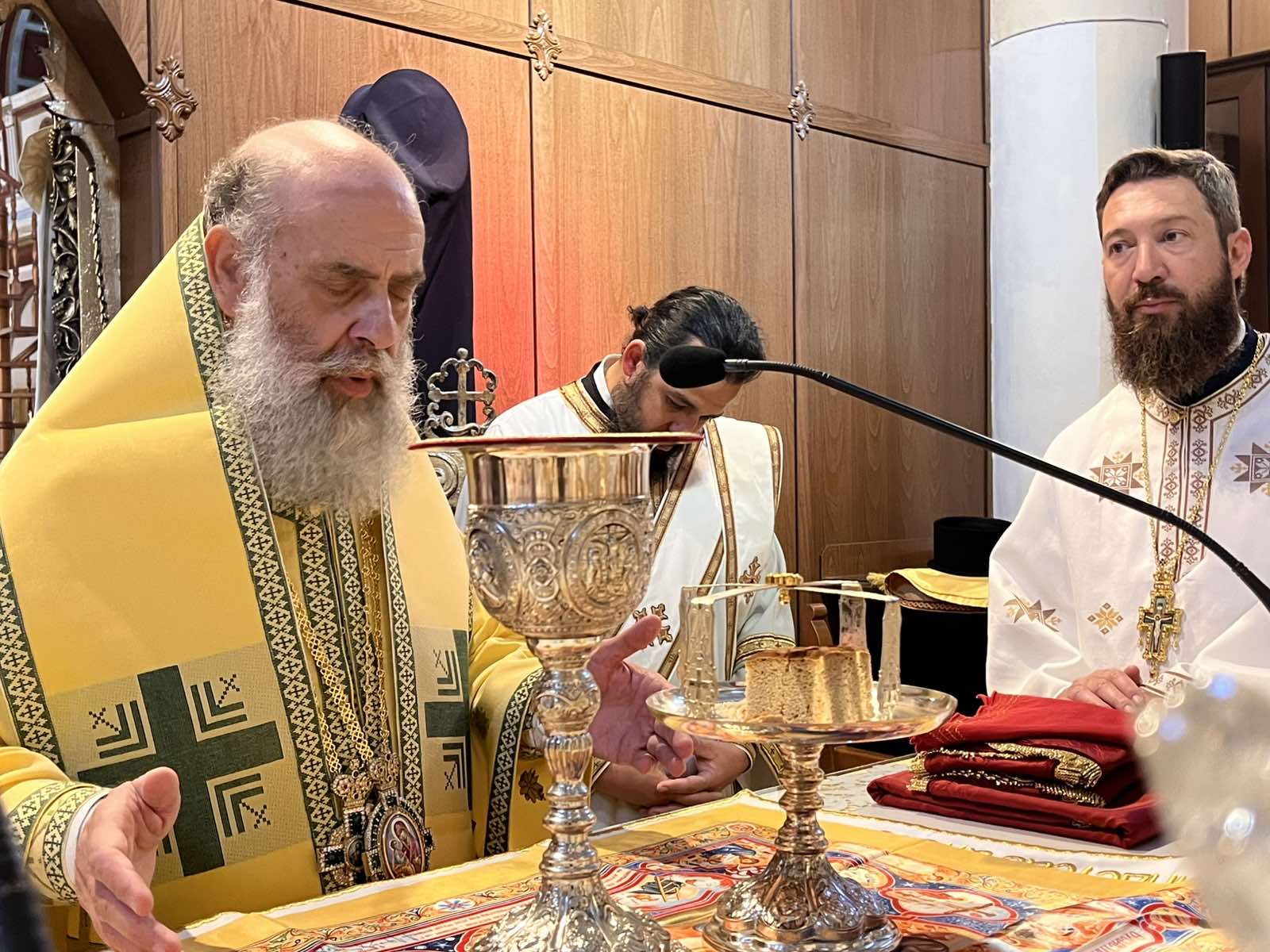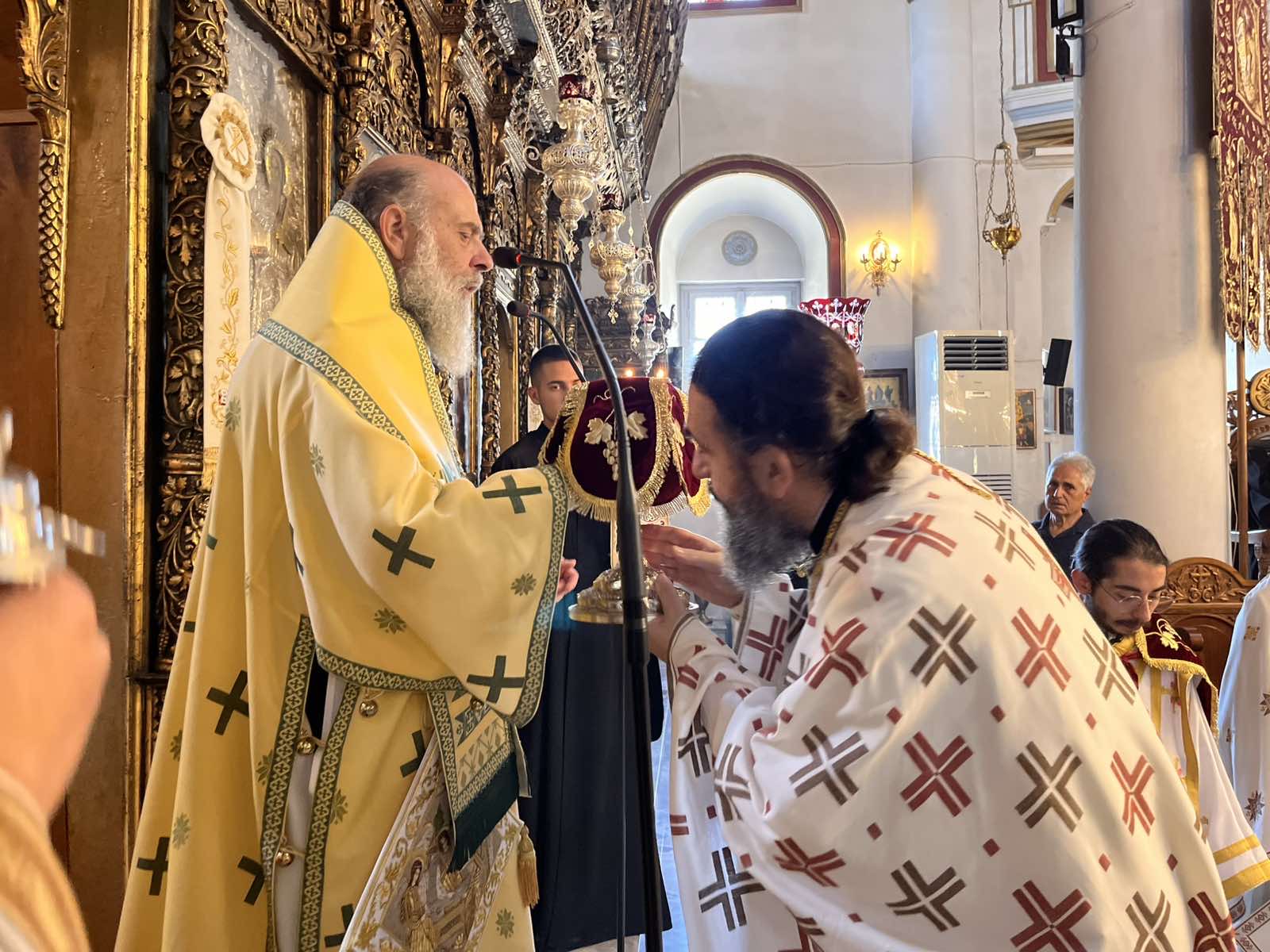 Συμπροσευχόμενος εντός του Ιερού Βήματος παρέστη και ο Σεβασμιώτατος Ποιμενάρχης μας κ. Ιερόθεος, ο οποίος με ιδιαίτερη χαρά υποδέχθηκε και καλωσόρισε τον φιλοξενούμενο Σεβ. Μητροπολίτη κ. Τιμόθεο, ευχαριστώντας τον θερμώς για την ανταπόκρισή του στην πρόσκληση και παρουσιάζοντάς τον στους πιστούς με θερμούς λόγους και ευγνωμοσύνη, κατά το πέρας της Θείας Λειτουργίας.