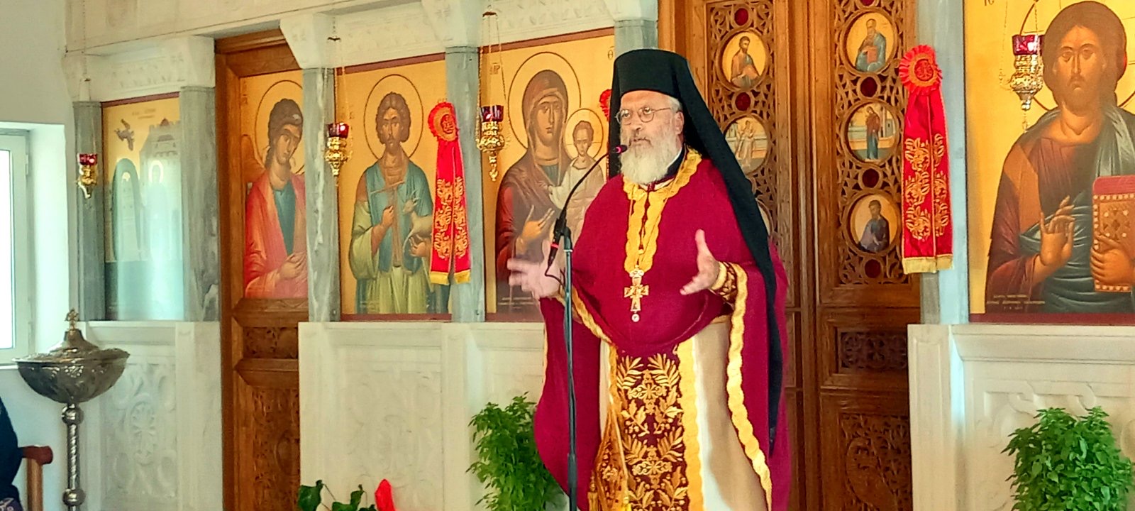 Κατά τη Θεία Λειτουργία, τη διακονία του Θείου λόγου ανέλαβε ο Πανοσιολογιώτατος Αρχιμανδρίτης π. Χρυσόστομος Χρυσόπουλος, κληρικός της Ιεράς Αρχιεπισκοπής Αθηνών, ο οποίος, εμπνεόμενος από το όνομα του Αγίου, επικέντρωσε τη σκέψη του, με γλαφυρότητα και ενάργεια στην προσπάθεια που πρέπει να καταβάλλουμε για να διακρίνουμε τον Σωτήρα μας, μέσα από τους αυτοπροβαλλόμενους Μεσσίες.
