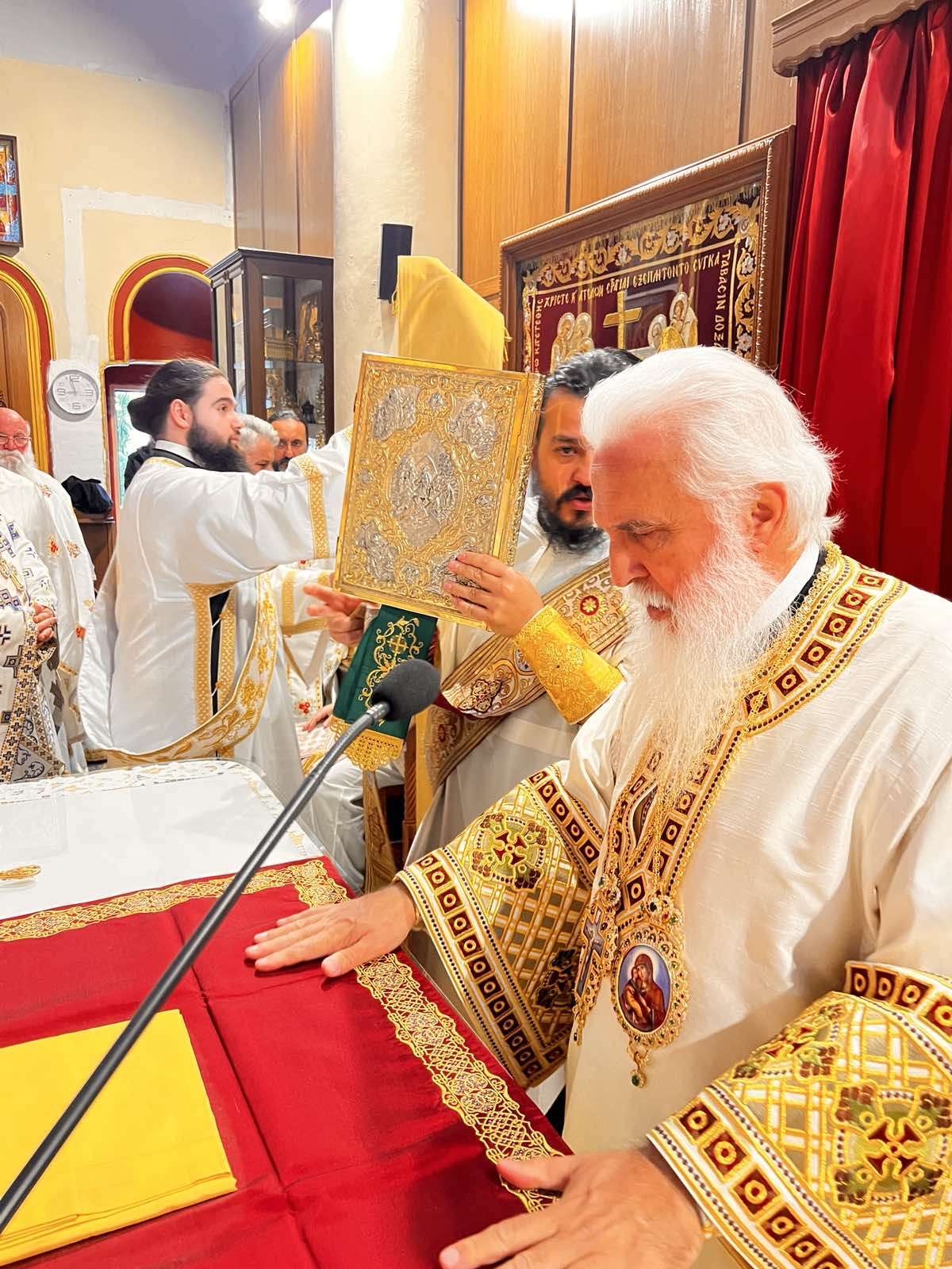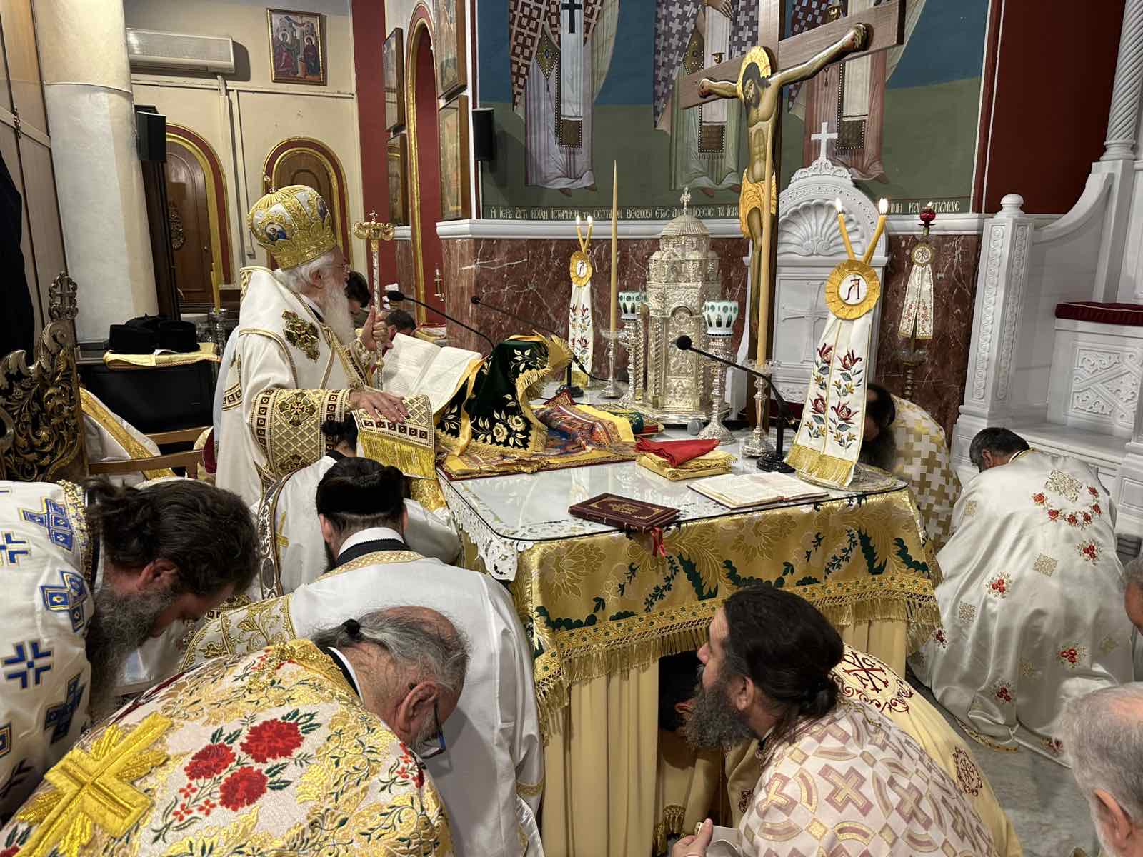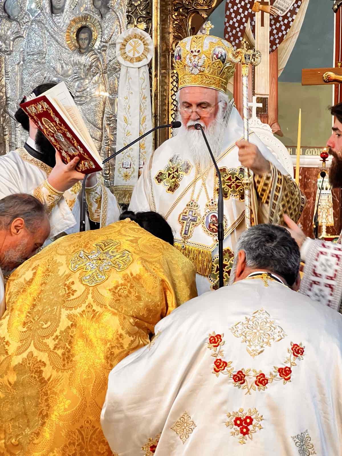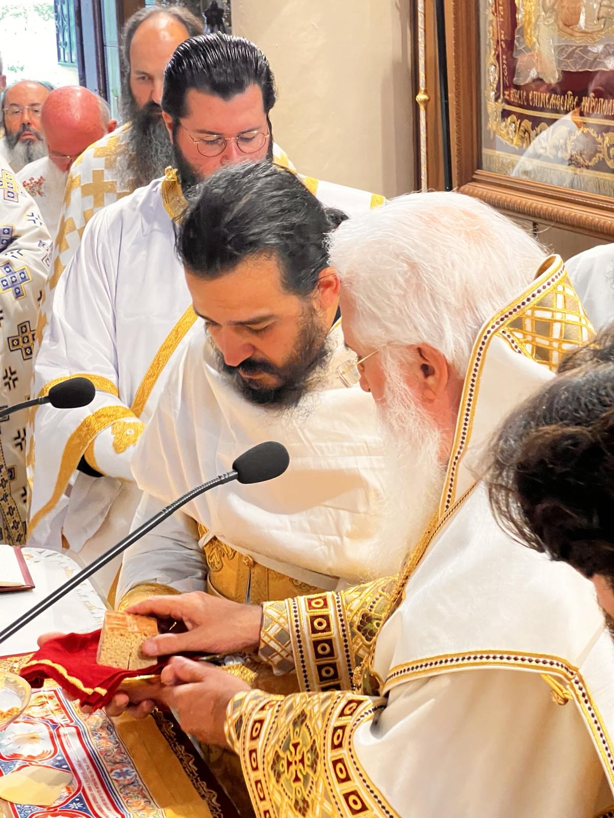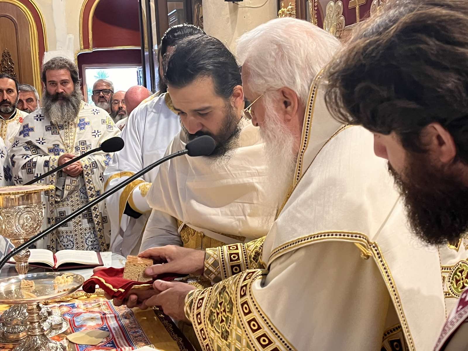 Προ της απολύσεως της Θείας Λειτουργίας, ο Σεβ. Ποιμενάρχης μας κ. Ιερόθεος χειροθέτησε σε Πρωτοπρεσβύτερο τον π. Κυριακό, ο οποίος στη συνέχεια, κατόπιν προτροπής του Σεβασμιωτάτου, διένειμε το αντίδωρο και δέχθηκε τις εγκάρδιες ευχές του πυκνού εκκλησιάσματος.