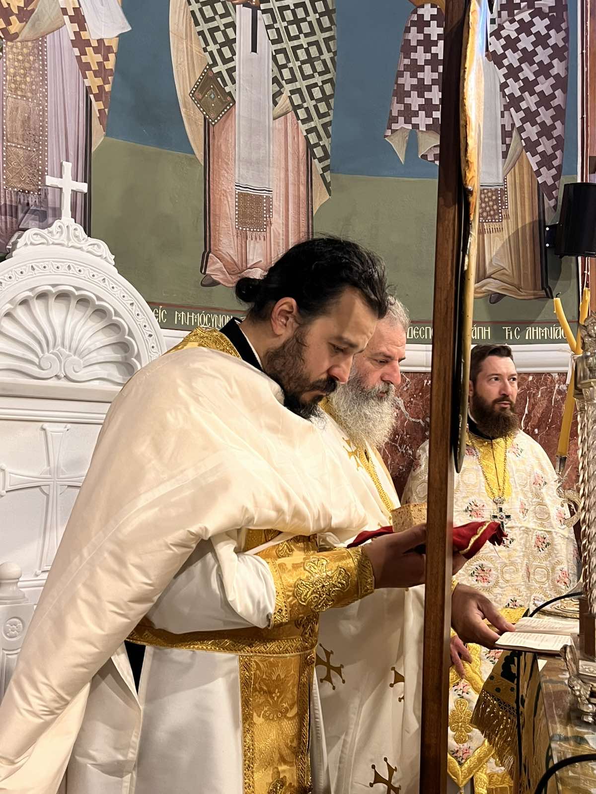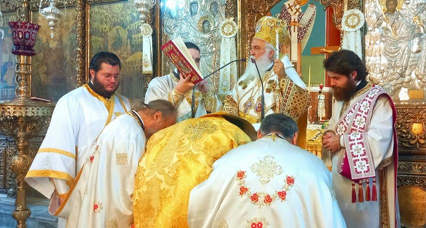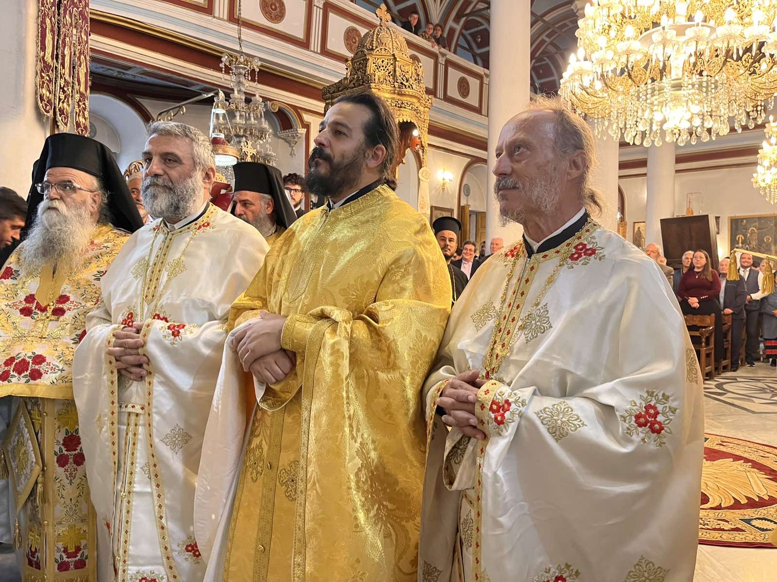 Κατά τη διάρκεια της Θείας Λειτουργίας, ο Σεβ. κ. Ιερόθεος, μέσα σε ένα συγκινησιακά φορτισμένο κλίμα, τέλεσε την εις Πρεσβύτερον χειροτονία του επί εξαετία ευλαβεστάτου Διακόνου του, π. Κυριακού Δημητριάδη, εγγάμου κληρικού και πατέρα δύο τέκνων, πτυχιούχου της Θεολογικής Σχολής του Αριστοτελείου Πανεπιστημίου Θεσσαλονίκης και κατόχου διπλώματος βυζαντινής μουσικής.