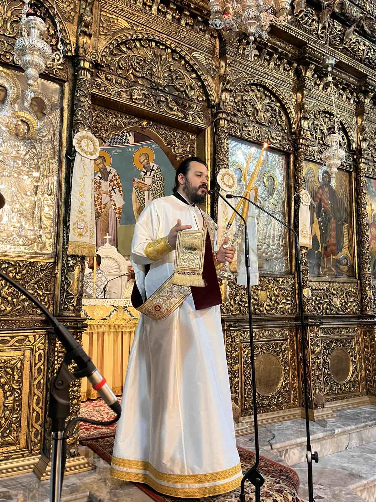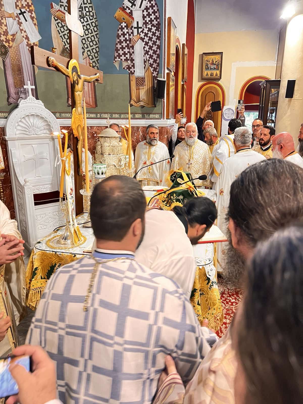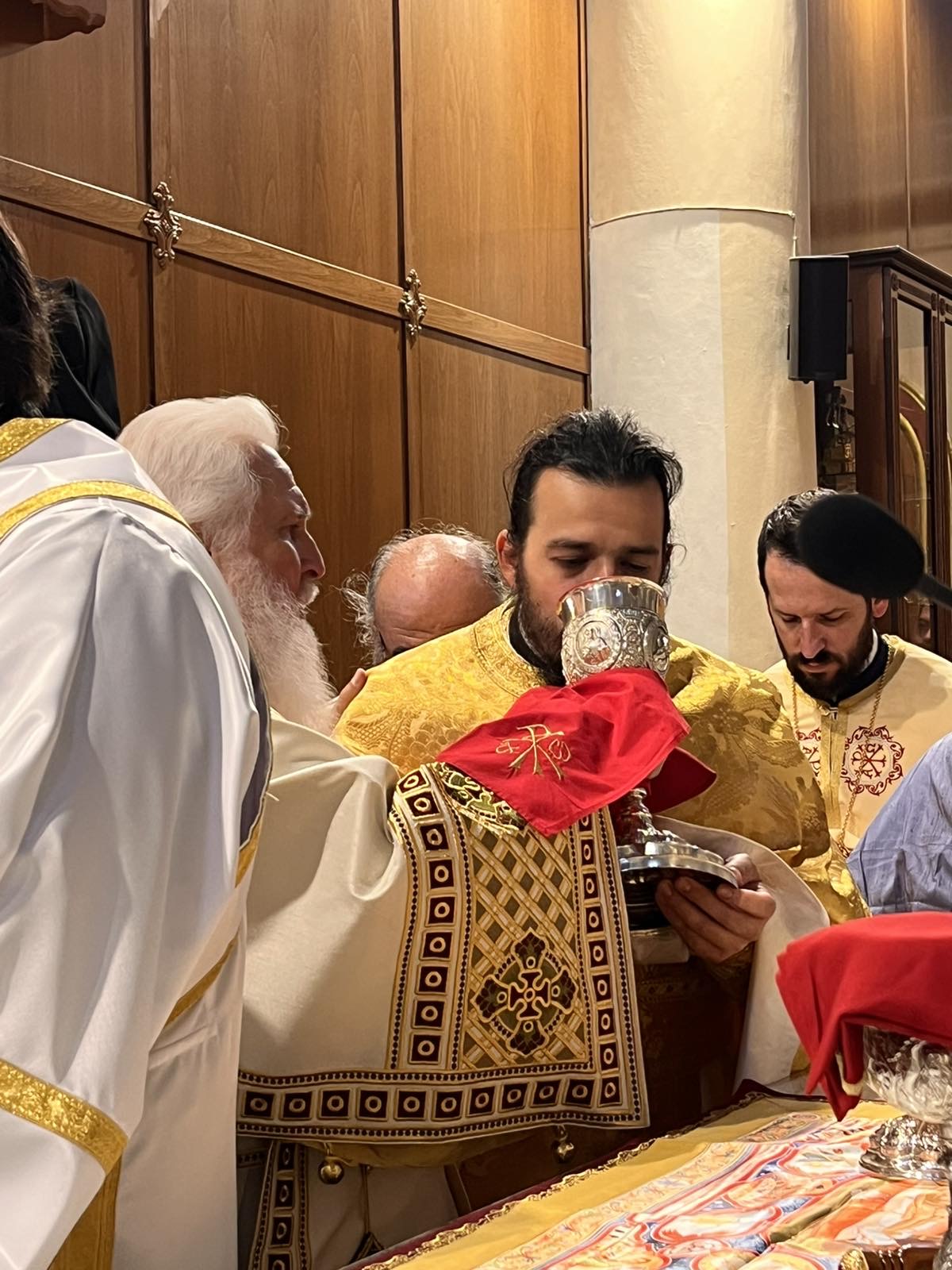 Κατά τη διάρκεια της Θείας Λειτουργίας, ο Σεβ. κ. Ιερόθεος, μέσα σε ένα συγκινησιακά φορτισμένο κλίμα, τέλεσε την εις Πρεσβύτερον χειροτονία του επί εξαετία ευλαβεστάτου Διακόνου του, π. Κυριακού Δημητριάδη, εγγάμου κληρικού και πατέρα δύο τέκνων, πτυχιούχου της Θεολογικής Σχολής του Αριστοτελείου Πανεπιστημίου Θεσσαλονίκης και κατόχου διπλώματος βυζαντινής μουσικής.