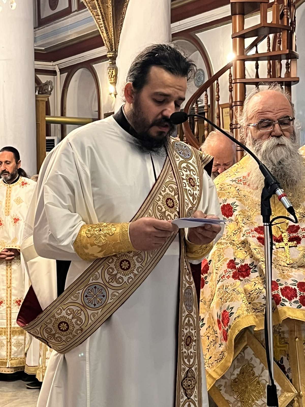 Στην αντιφώνησή του, ο Σεβασμιώτατος, εμφανώς συγκινημένος, αφού ευχαρίστησε τον π. Κυριακό για την επί εξαετία ανεπίληπτη, φιλότιμη και υποδειγματική διακονία του, απηύθυνε προς αυτόν πνευματικούς λόγους πατρικής αγάπης, αναφερόμενος στο υψηλό και ευθυνοφόρο υπούργημα της Ιερωσύνης, το οποίο αποτελεί σταυρό για κάθε κληρικό. Κάλεσε δε τον νεοχειροτονηθέντα ιερέα να είναι πάντοτε ειλικρινής και ανεκτικός με τις αστοχίες των ανθρώπων, ενώ τον παρότρυνε να διακονεί το Ιερό Θυσιαστήριο με πνεύμα ταπεινώσεως, συνέσεως και αυτοθυσίας, ώστε να καταστεί άξιος λειτουργός των Μυστηρίων του Θεού.