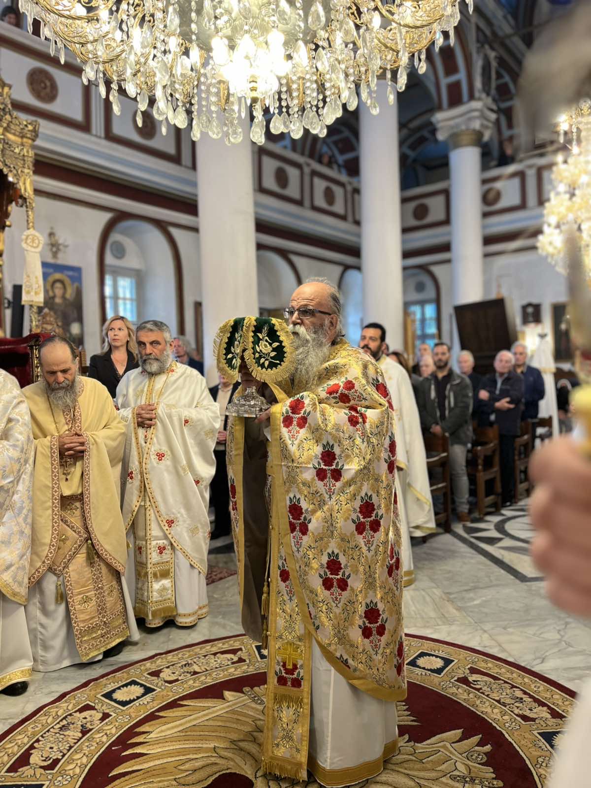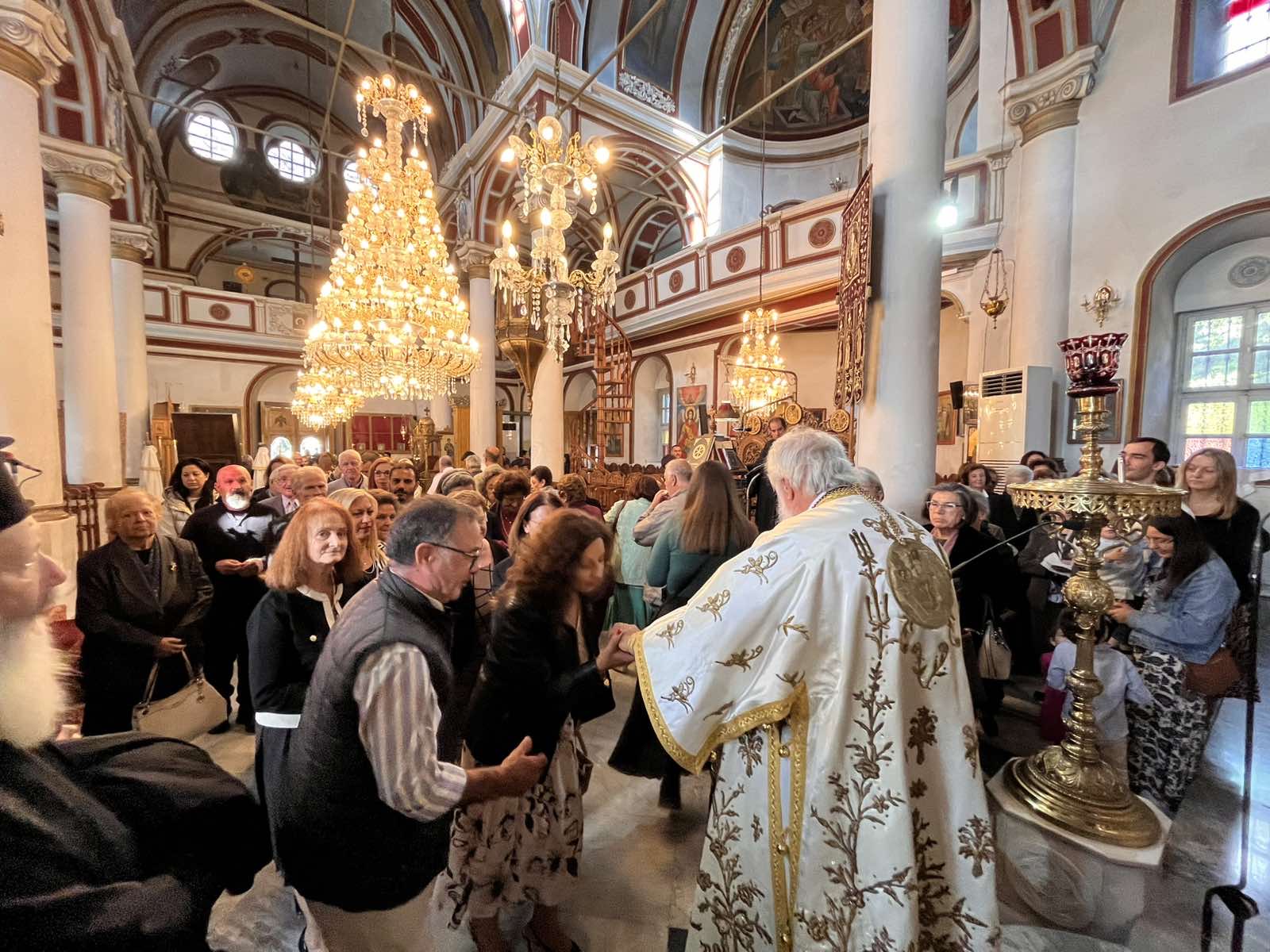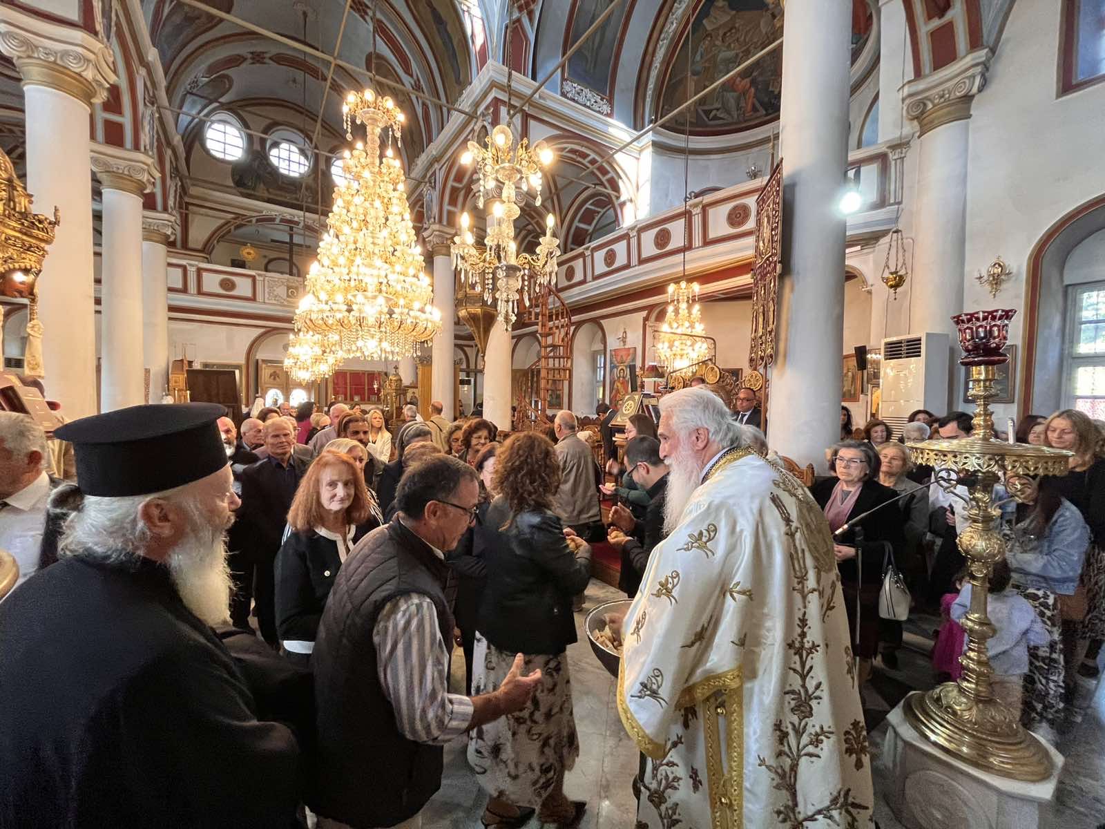 Αναλυτικότερα, την παραμονή της εορτής, Παρασκευή, 3 Οκτωβρίου 2025, τελέσθηκε ο Μέγας Πολυαρχιερατικός Εσπερινός, στον περικαλλή Ιερό Μητροπολιτικό Ναό της Παναγίας Τριάδος Μυρίνης, προεξάρχοντος του Σεβ. Μητροπολίτου Φθιώτιδος κ. Συμεών, ενώ συγχοροστάτησαν ο Σεβ. Μητροπολίτης Κηφισίας, Αμαρουσίου, Ωρωπού και Μαραθώνος κ. Κύριλλος και ο εορτάζων Σεβ. κ. Ιερόθεος.