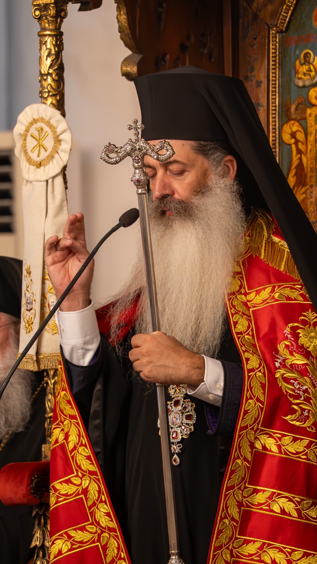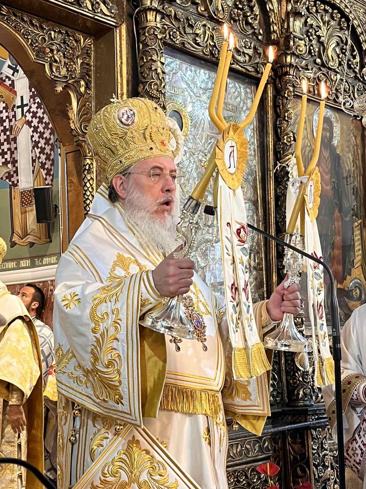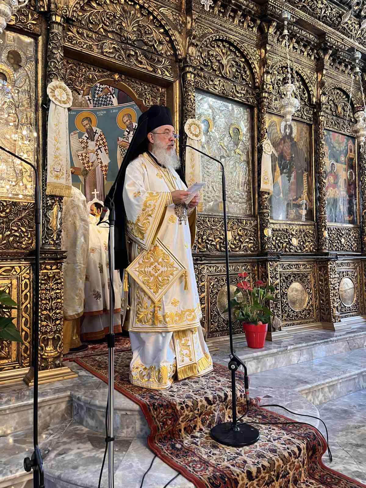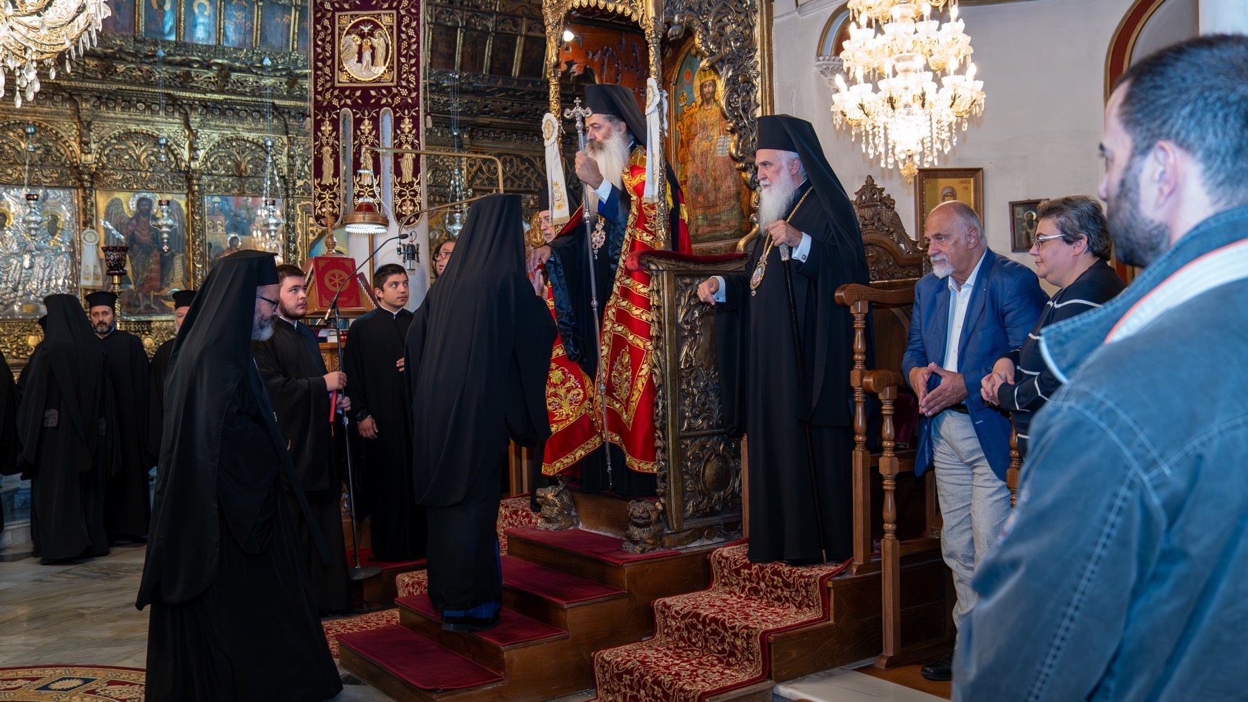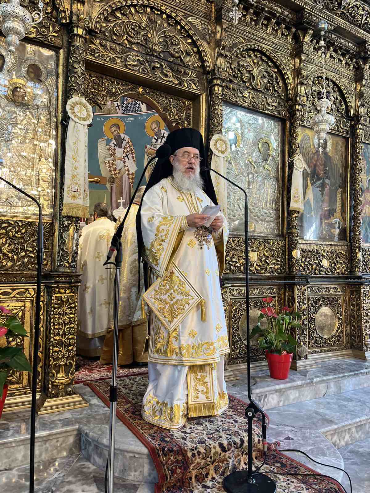 Προ του πέρατος της λατρευτικής συνάξεως, ο Σεβ. Ποιμενάρχης μας κ. Ιερόθεος ευχαρίστησε θερμότατα και από καρδιάς, για ακόμη μία φορά, τους φιλοξενουμένους Αρχιερείς, οι οποίοι από την πολλή τους προς εκείνον αγάπη υποβλήθηκαν στον κόπο του ταξιδίου και, παρά την κακοκαιρία και τη βροχόπτωση, λάμπρυναν με την ευλογητή παρουσία τους τα ονομαστήριά του. Εξέφρασε και πάλι την ειλικρινή ευγνωμοσύνη και τον βαθύτατο σεβασμό του προς τα πρόσωπά τους, ενώ δεν παρέλειψε να υπογραμμίσει ότι η σύναξή τους κύκλω του ιερού θυσιαστηρίου φανερώνει την ενότητα της Εκκλησίας «ἐν τῷ συνδέσμῳ τῆς εἰρήνης καὶ τῆς ἀγάπης».