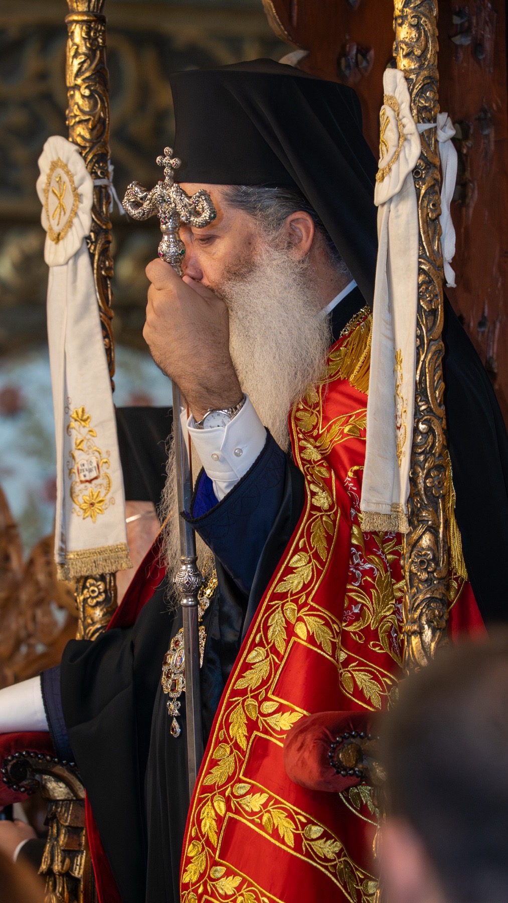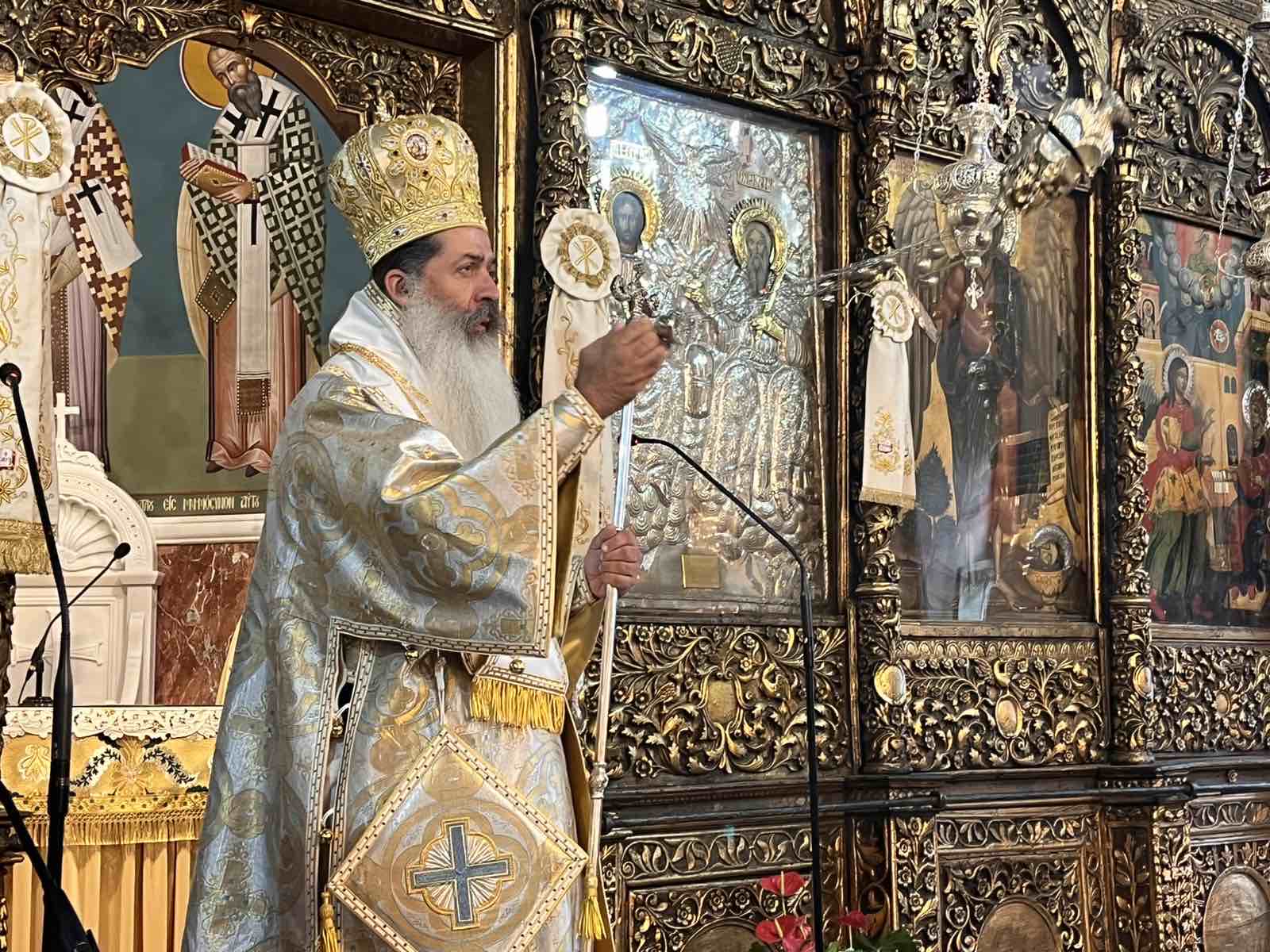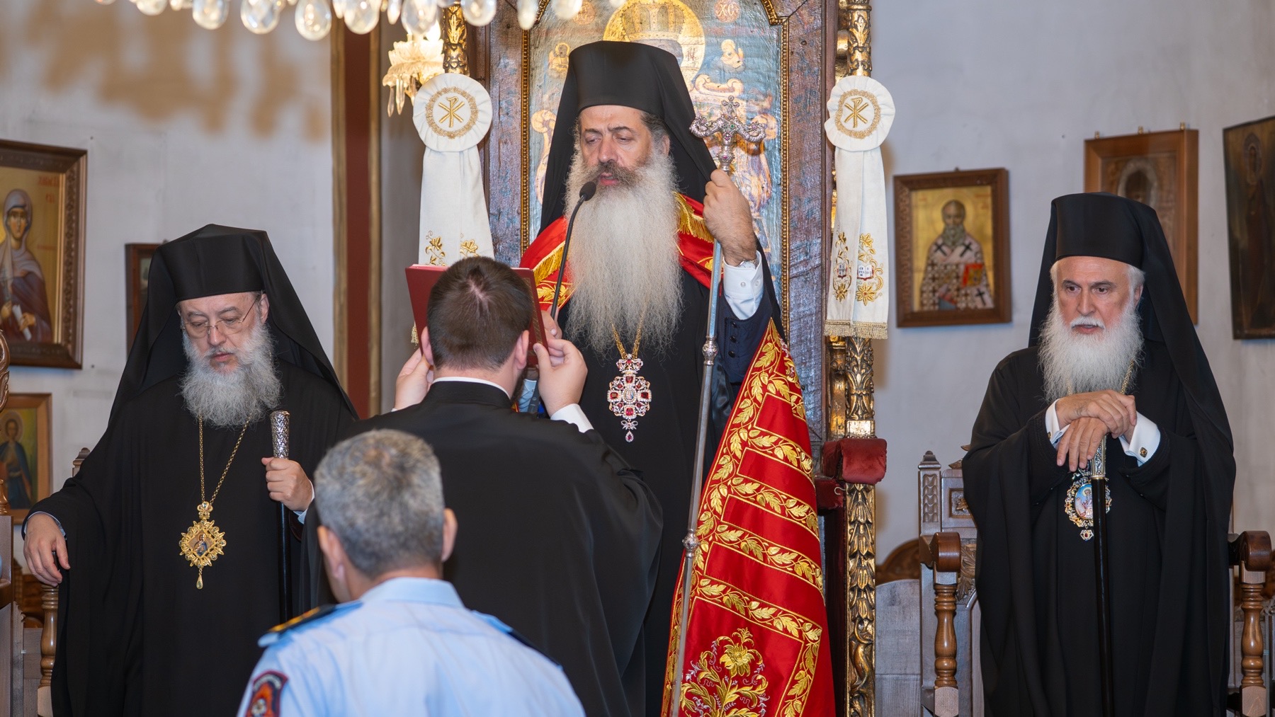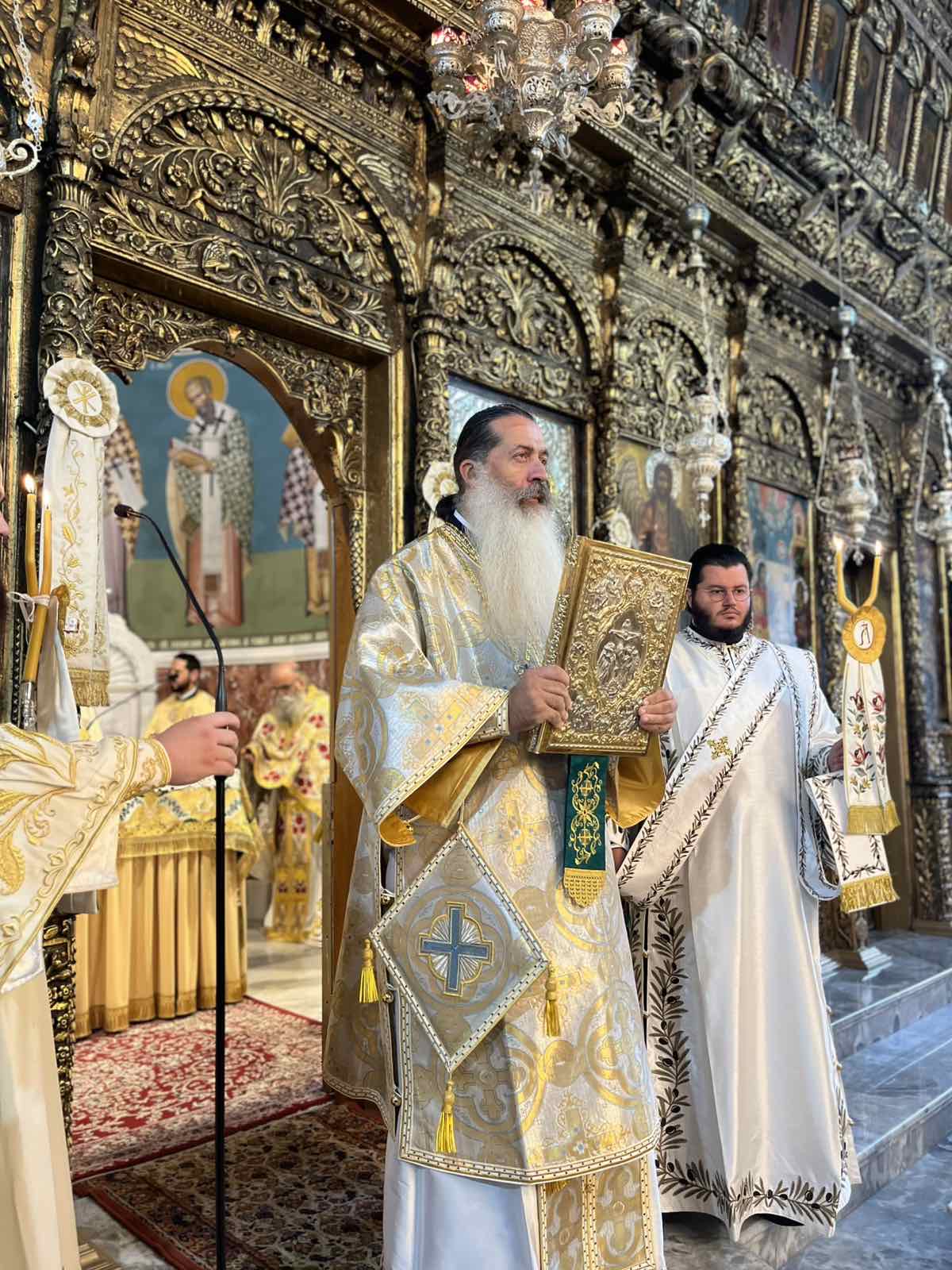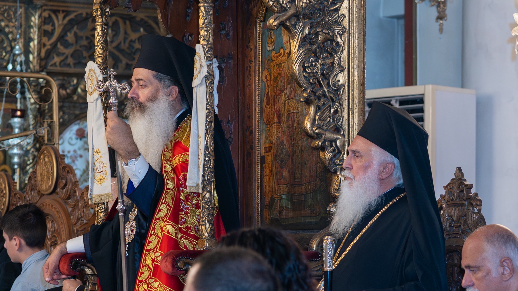 Προ του πέρατος της λατρευτικής συνάξεως, ο Σεβ. Ποιμενάρχης μας κ. Ιερόθεος ευχαρίστησε θερμότατα και από καρδιάς, για ακόμη μία φορά, τους φιλοξενουμένους Αρχιερείς, οι οποίοι από την πολλή τους προς εκείνον αγάπη υποβλήθηκαν στον κόπο του ταξιδίου και, παρά την κακοκαιρία και τη βροχόπτωση, λάμπρυναν με την ευλογητή παρουσία τους τα ονομαστήριά του. Εξέφρασε και πάλι την ειλικρινή ευγνωμοσύνη και τον βαθύτατο σεβασμό του προς τα πρόσωπά τους, ενώ δεν παρέλειψε να υπογραμμίσει ότι η σύναξή τους κύκλω του ιερού θυσιαστηρίου φανερώνει την ενότητα της Εκκλησίας «ἐν τῷ συνδέσμῳ τῆς εἰρήνης καὶ τῆς ἀγάπης».