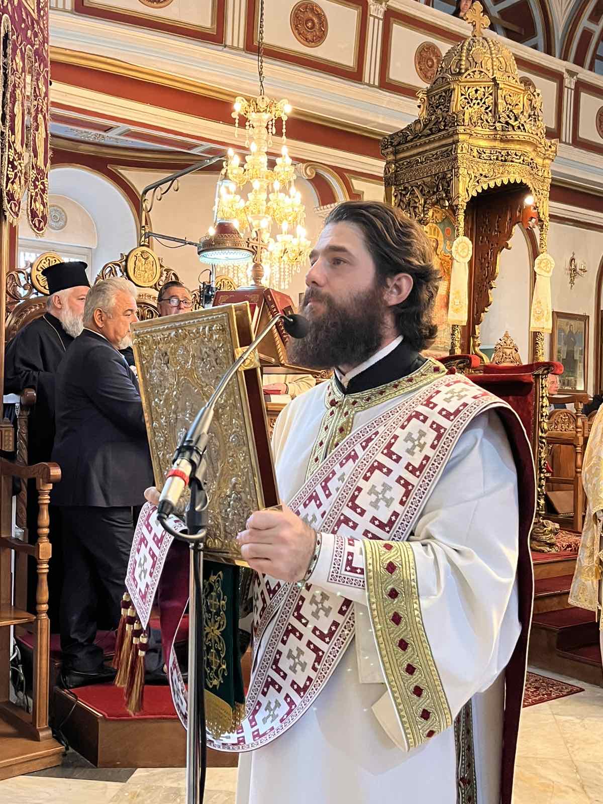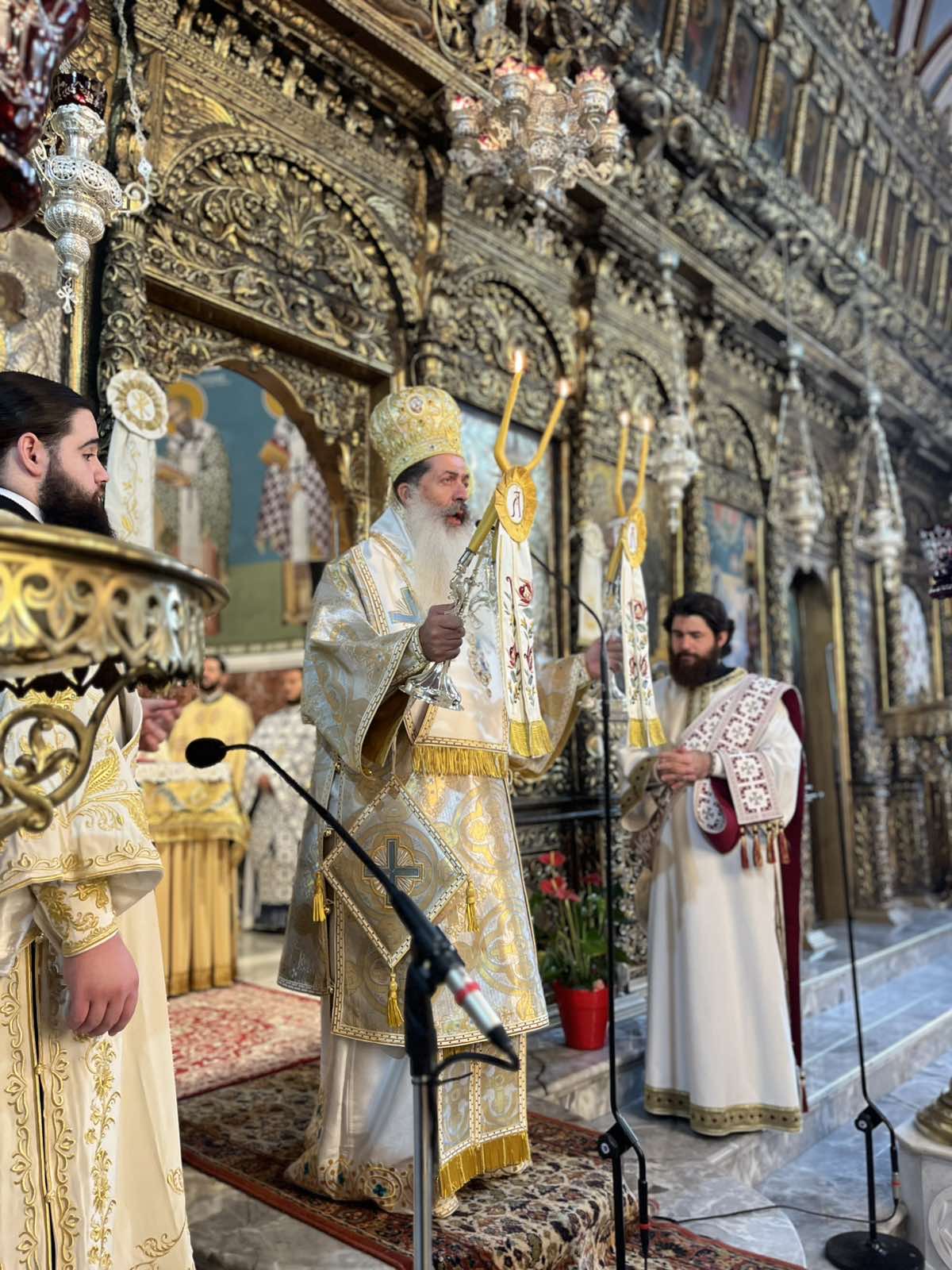 Αναφέρθηκε με ξεχωριστά λόγια στην προσωπικότητα και στην πολυετή εκκλησιαστική διακονία του κάθε Αρχιερέα και παρακάλεσε τον Σεβ. Μητροπολίτη Φθιώτιδος κ. Συμεών να απευθύνει στη λατρευτική σύναξη λόγο πνευματικής οικοδομής και κατηχήσεως.