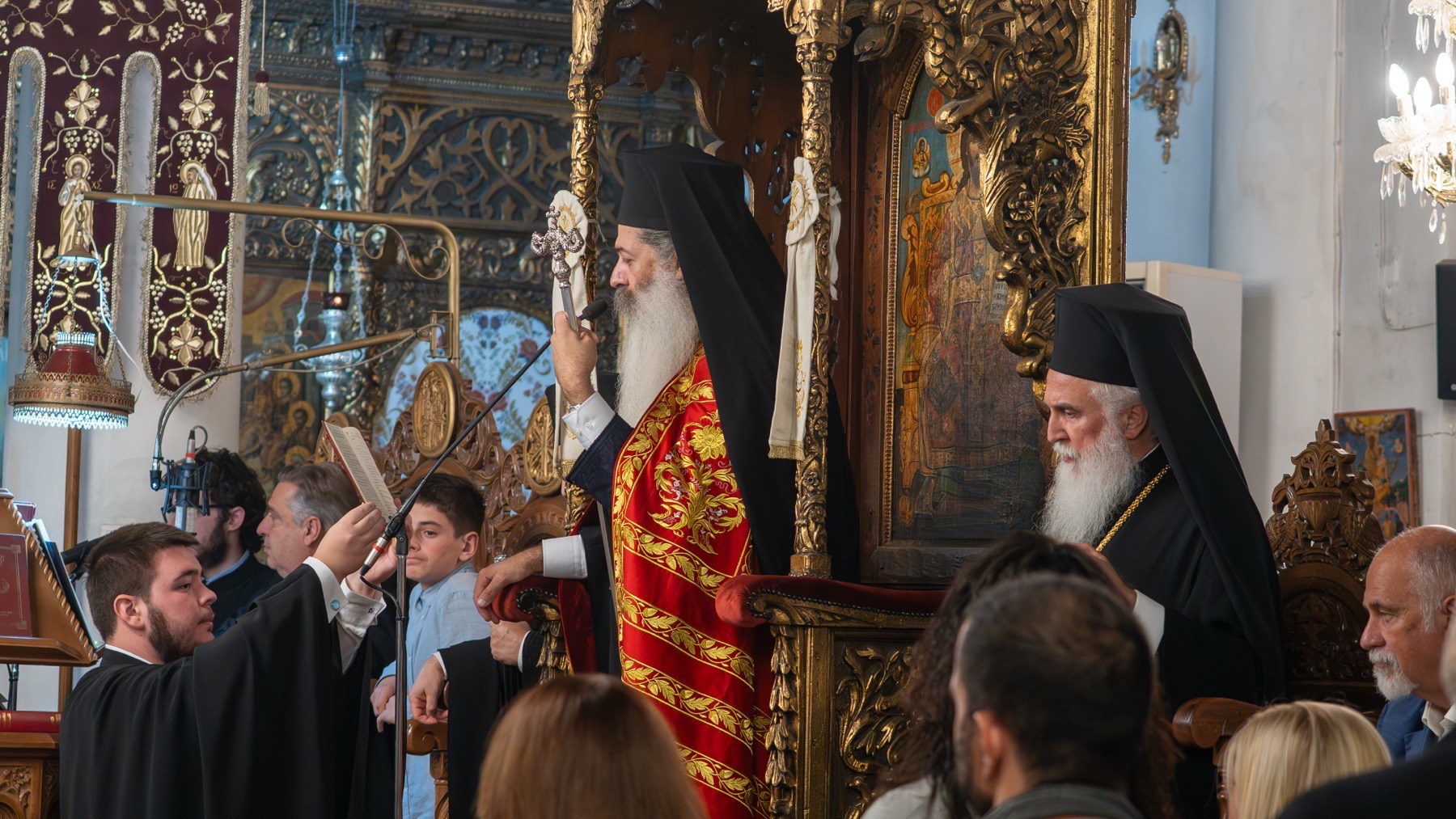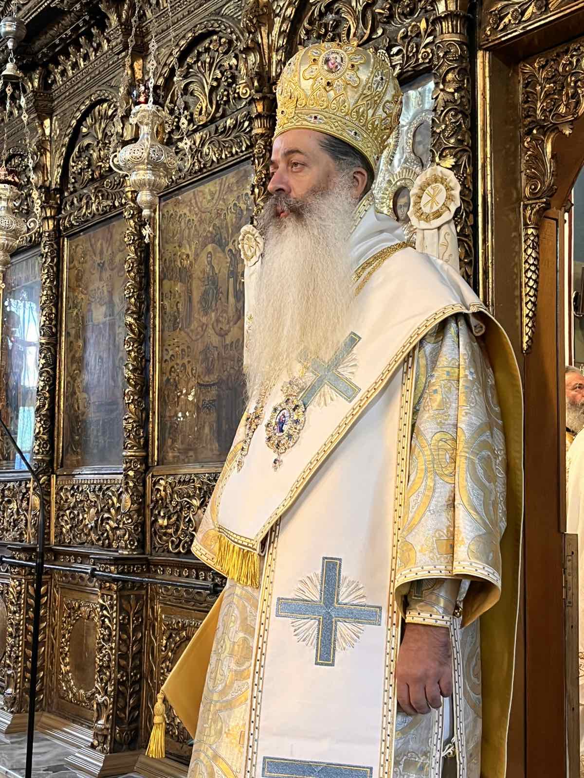 Ευχήθηκε δε στον Σεβ. Ποιμενάρχη μας να τον ενδυναμώνει η Χάρις του Παναγίου Πνεύματος, με τις δυνατές μεσιτείες του εφόρου και προστάτου του, Αγίου Ιεροθέου, ώστε να αναλώνει τη ζωή του στη διακονία του πιστού λαού του Θεού, ακολουθώντας το αξιομίμητο παράδειγμα του πρώτου Αρχιθύτου των Αθηνών, για να καταξιώνεται στη συνείδηση των Χριστιανών, ως ιερός του Θεού άνθρωπος και γνήσιος διάδοχος των κορυφαίων εκκλησιαστικών φυσιογνωμιών της Αποστολικής Εκκλησίας.