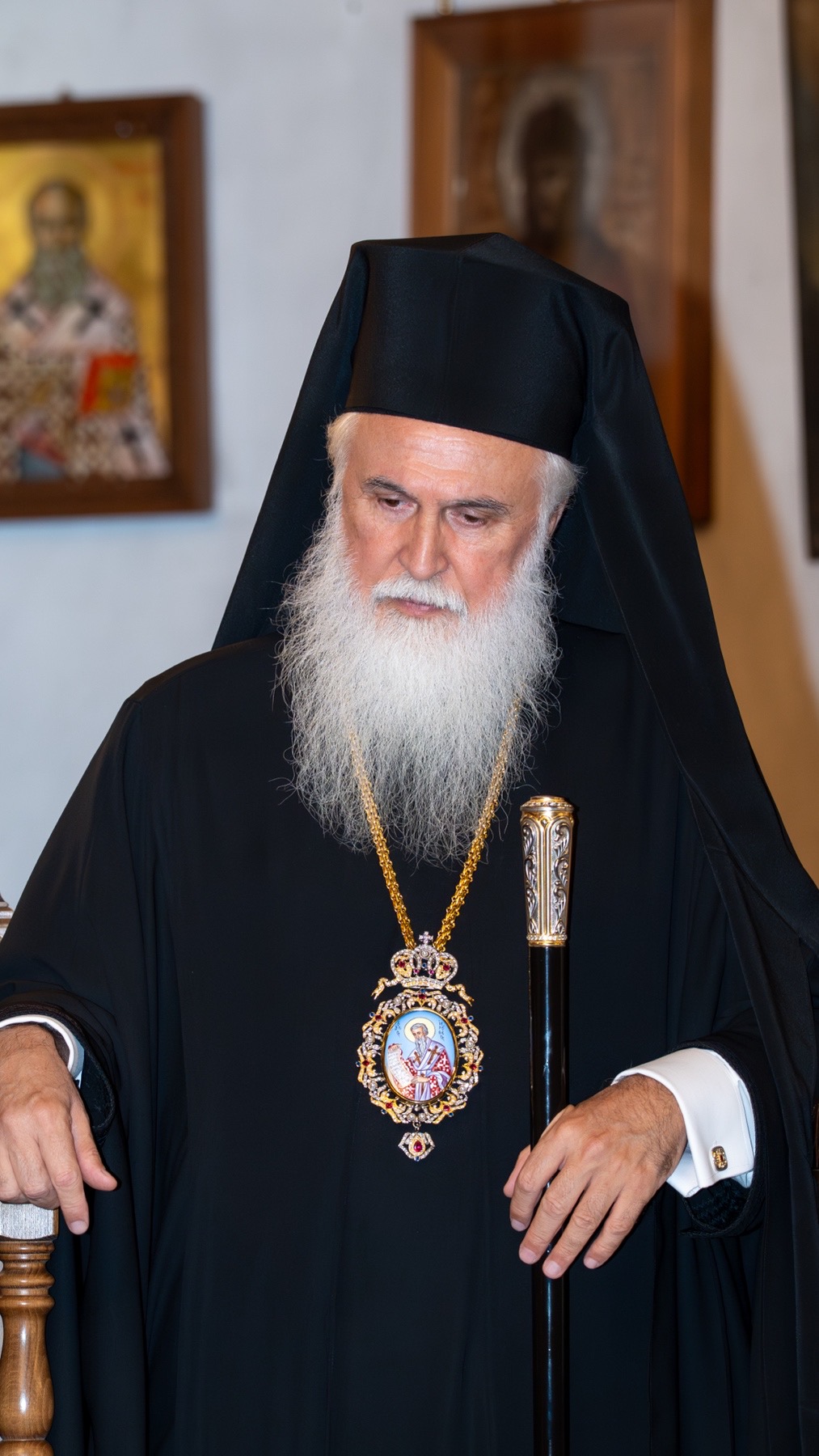Προ του πέρατος του Εσπερινού, ο Σεβ. κ. Ιερόθεος καλωσόρισε με θερμούς και εγκάρδιους λόγους τους φιλοξενουμένους Αρχιερείς, τους ευχαρίστησε αδελφικά για την τιμητική παρουσία τους στο ακριτικό νησί του Αρχιπελάγους, ενώ εξέφρασε την ιδιαίτερη χαρά του, διότι κατ’ αγαθή συγκυρία οι δύο Αρχιερείς που προσήλθαν πηγαία να του ευχηθούν, διαποιμαίνουν τις Ιερές Μητροπόλεις, στις οποίες ο ίδιος επί πολλά έτη ευδοκίμως υπηρέτησε, διακονώντας τις πνευματικές ανάγκες των εκεί Χριστιανών.