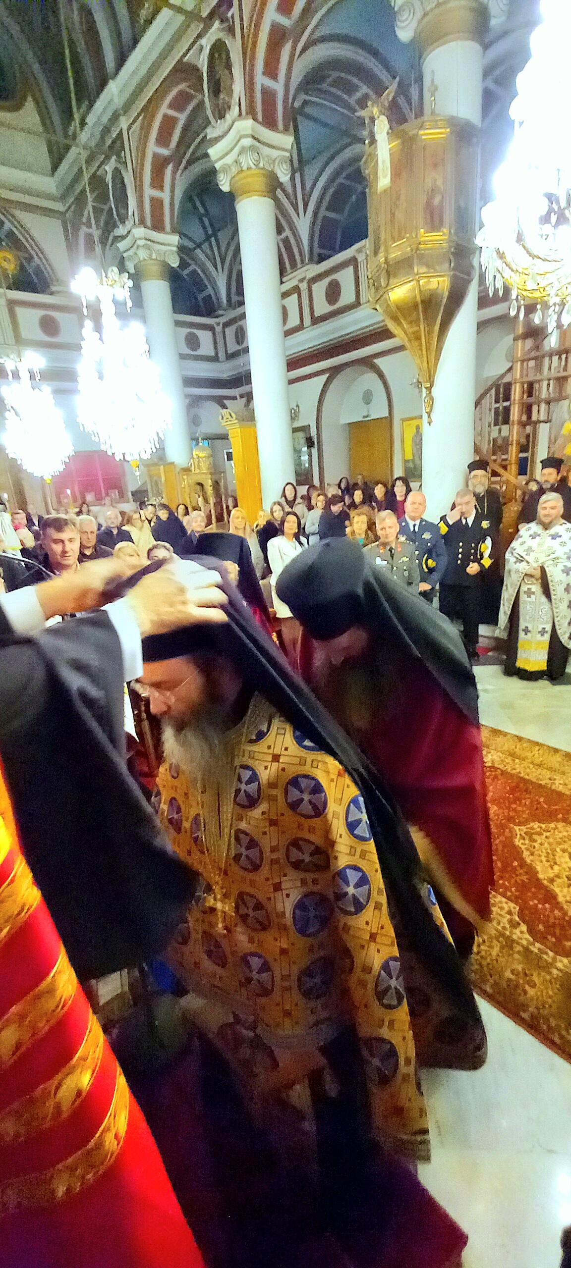 Προ του πέρατος του εόρτιου Εσπερινού, ο Σεβ. κ. Ιερόθεος προεχείρισε σε Αρχιμανδρίτη και σε Πρωτοπρεσβύτερο, αντιστοίχως, τον π. Πολύκαρπο Πρασσά, πνευματικό ανάστημα του Πανοσιολ. Πρωτοσυγκέλλου π. Ιερωνύμου Σχίζα, και τον π. Δημήτριο Ζαγούδη, ευσυνείδητο και ταπεινό λευίτη κληρικό, οι οποίοι, με ένθεο ζήλο, φόβο Θεού, σύνεση και διάκριση, εξυπηρετούν τις πνευματικές ανάγκες του ακρίτα λαού της νήσου μας. Στην προσλαλιά του ο Σεβ. Ποιμενάρχης μας τόνισε ότι τα οφφίκια της Εκκλησίας δεν αποτελούν κοσμικά αξιώματα, αλλά πνευματικά δώρα υψηλού συμβολισμού, ενώ δεν παρέλειψε να επαινέσει από καρδιάς τους δύο κληρικούς για τη γνήσια αφοσίωσή τους στην Εκκλησία, τη φιλότιμη διακονία τους και το εκκλησιαστικό ήθος τους.