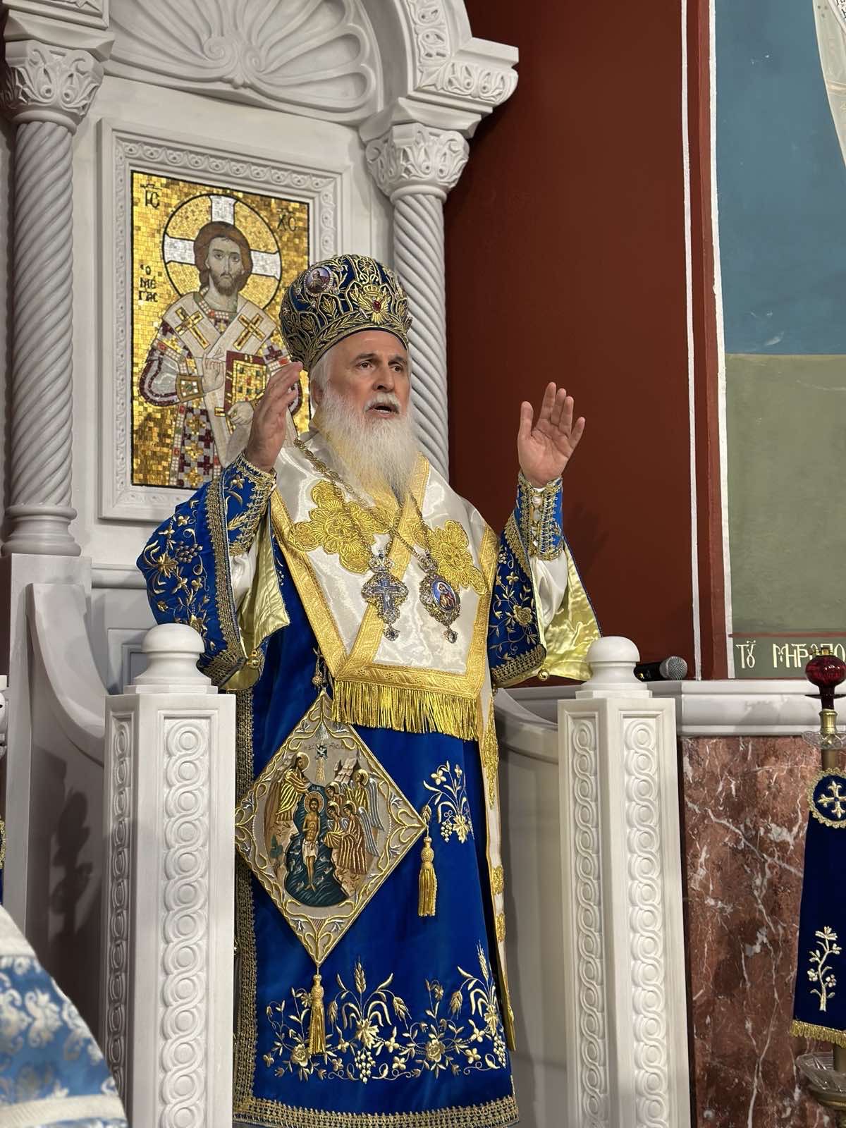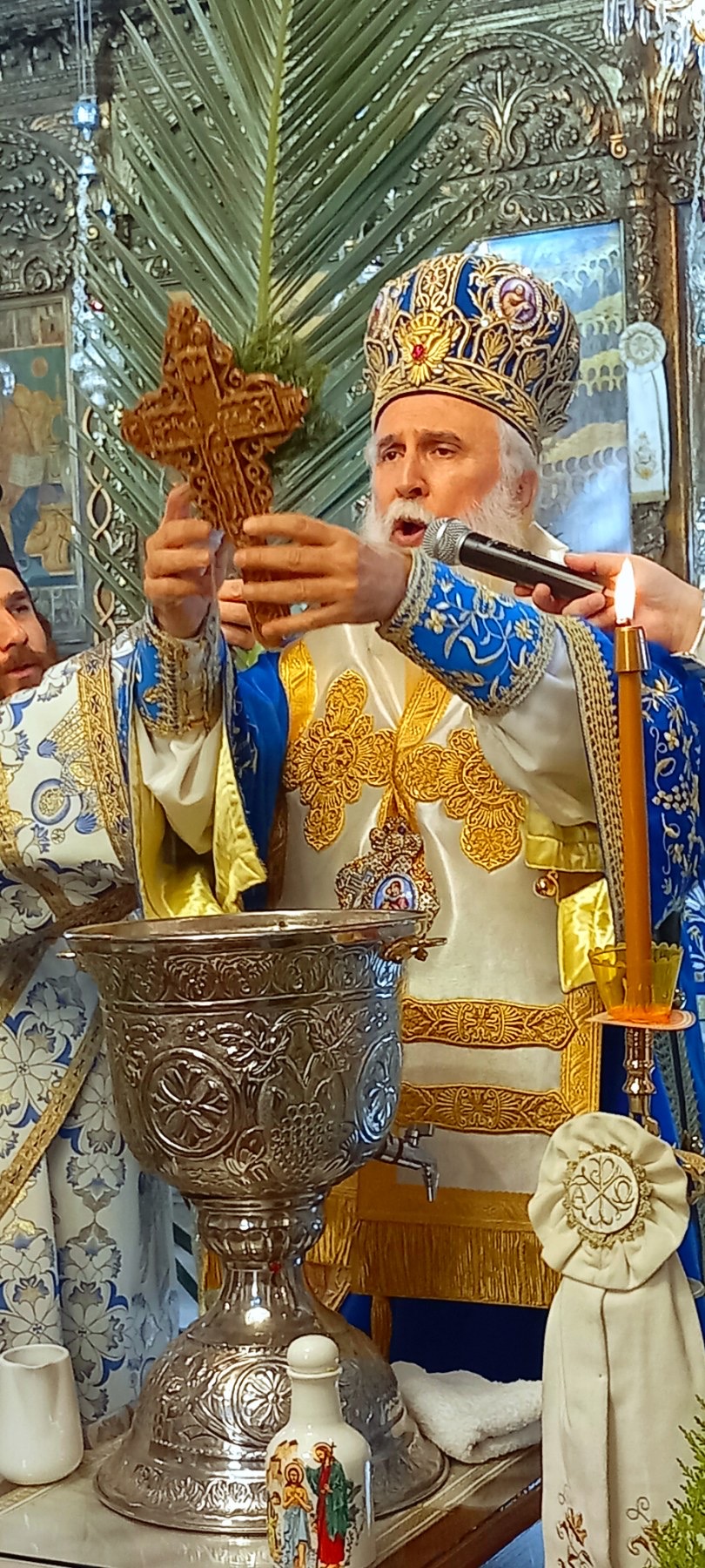 Στη σύντομη προσλαλιά του, ο Σεβ. Ποιμενάρχης μας υπογράμμισε ότι η μεγάλη εορτή των Θεοφανείων εκπέμπει το μήνυμα της ελπίδας, της φώτισης και της πνευματικής αναγέννησης, αφού ο Ιησούς Χριστός, βαπτιζόμενος «ἐν τοῖς ῥείθροις τοῦ Ἰορδάνου», ανακαινίζει τον άνθρωπο και τον καλεί να επανεύρει τον αιώνιο προορισμό του, δηλαδή να γίνει και πάλι οικιστής του Παραδείσου και κατά χάριν Θεός. Επίσης, εξέφρασε τα θερμά συγχαρητήριά του σε όσους, με πίστη, ευλάβεια και τόλμη, βούτηξαν στη θάλασσα, προκειμένου να ανασύρουν τον Τίμιο Σταυρό, και τους επαίνεσε από καρδιάς για την προσήλωσή τους στις πατρώες παραδόσεις του τόπου μας. Ευχήθηκε, τέλος, σε όλους να έχουν τον φωτισμό του Παναγίου Πνεύματος, η δε ζωή τους να καταυγάζεται από το θερμαντικό και παρηγορητικό φως του προσώπου του Χριστού.