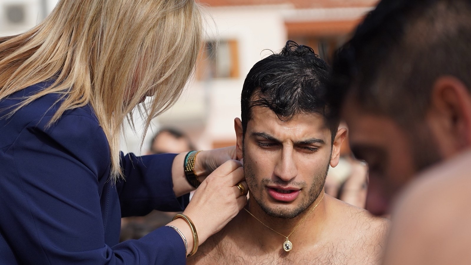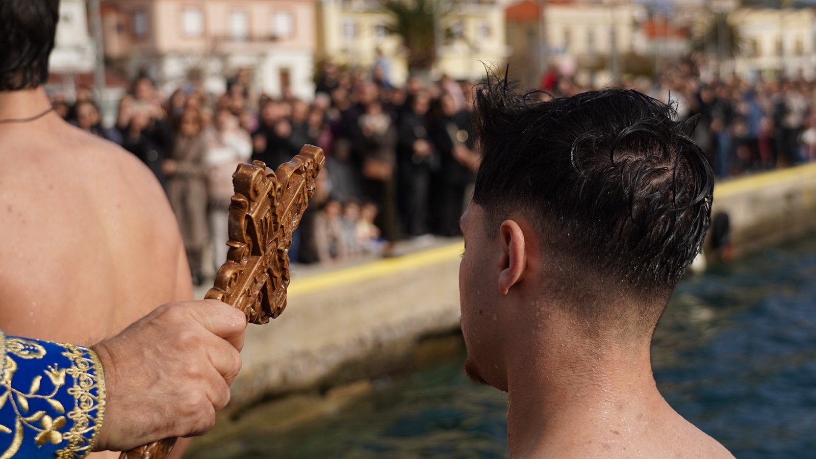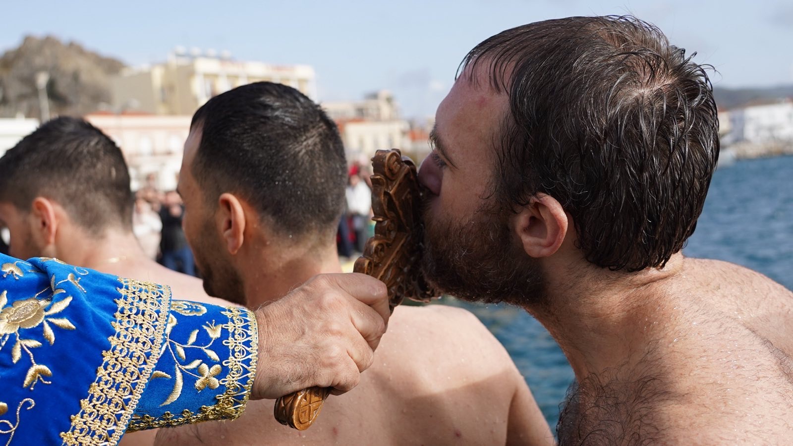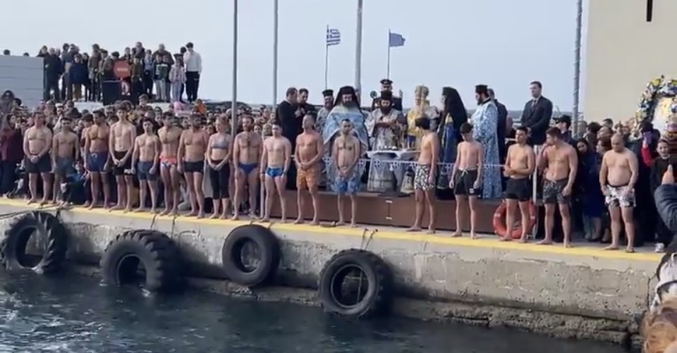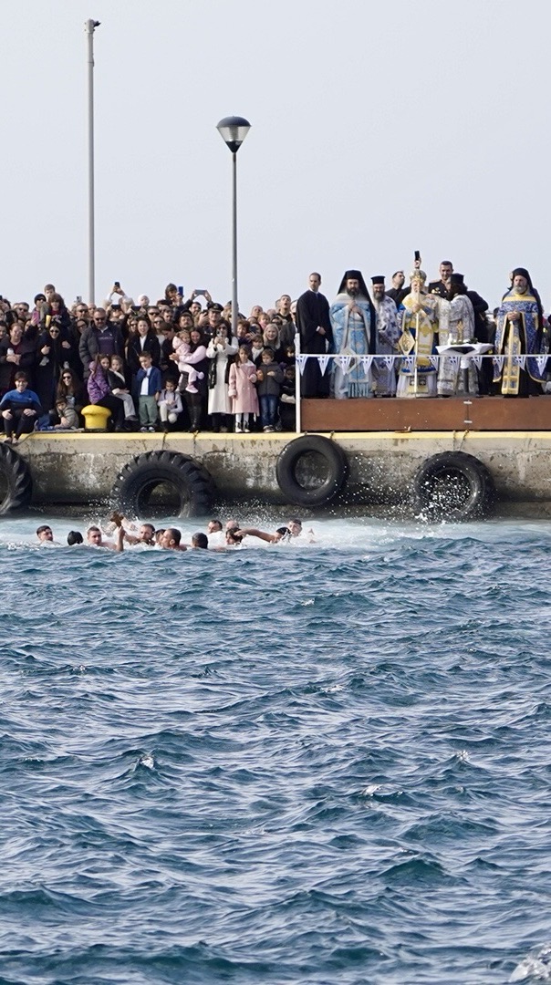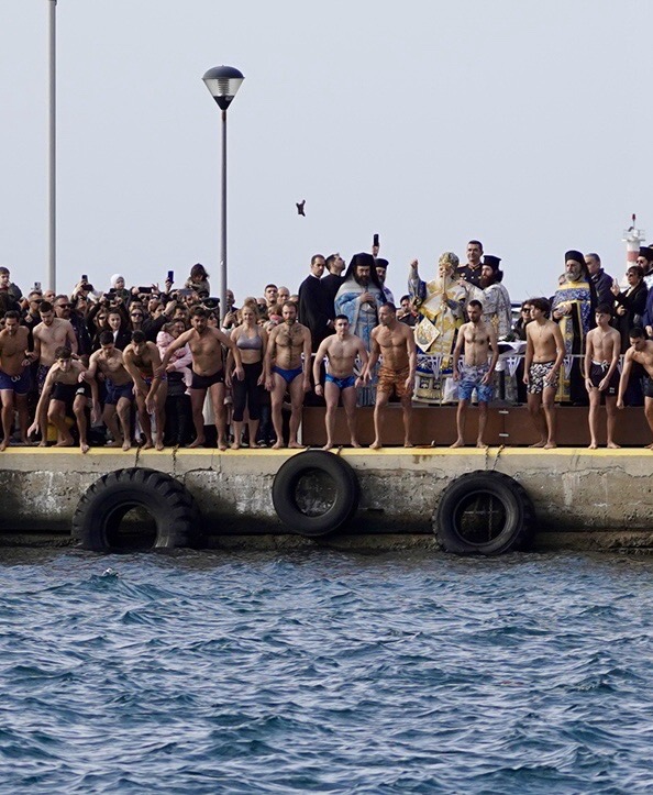 Παρά τους θυελλώδεις ανέμους, πολλοί νέοι έπεσαν και εφέτος στα παγωμένα νερά, με σκοπό να λάβουν την ευλογία του Τιμίου Σταυρού, προς φωτισμό και πνευματική ενίσχυση των ιδίων και των οικογενειών τους, τηρώντας το πολυαιώνιο έθιμο του Γένους μας και αποσπώντας το θερμό χειροκρότημα των παρευρισκομένων.